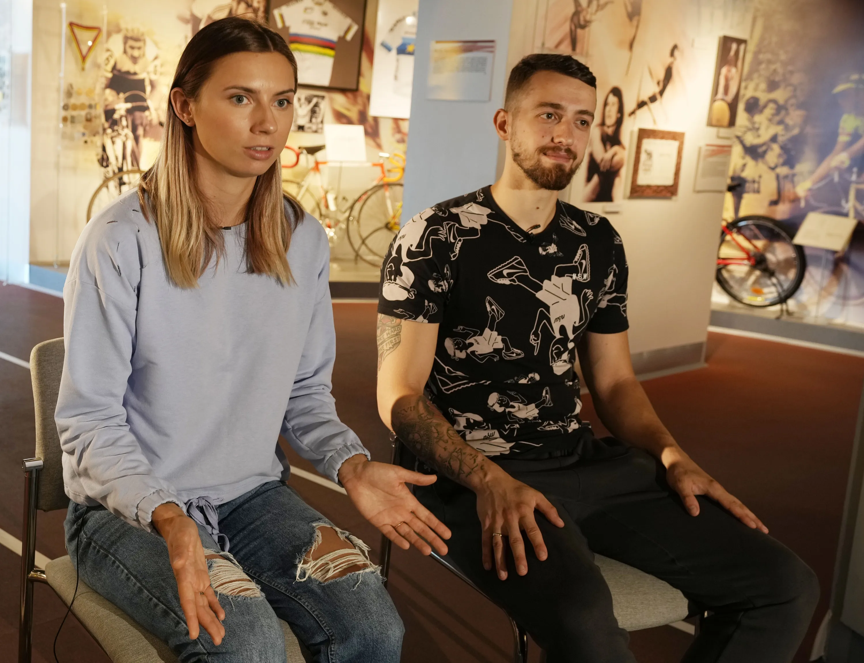 Belarusian Olympic sprinter Krystsina Tsimanouskaya, left, and her husband Arseni Zdanevich speak to The Associated Press in Warsaw, Poland, on Wednesday August 11, 2021. The runner, who has found refuge to rebuild her life in Poland, described the feeling of safety when police took her away from her national team officials. (Photo by Czarek Sokolowski/AP Photo)