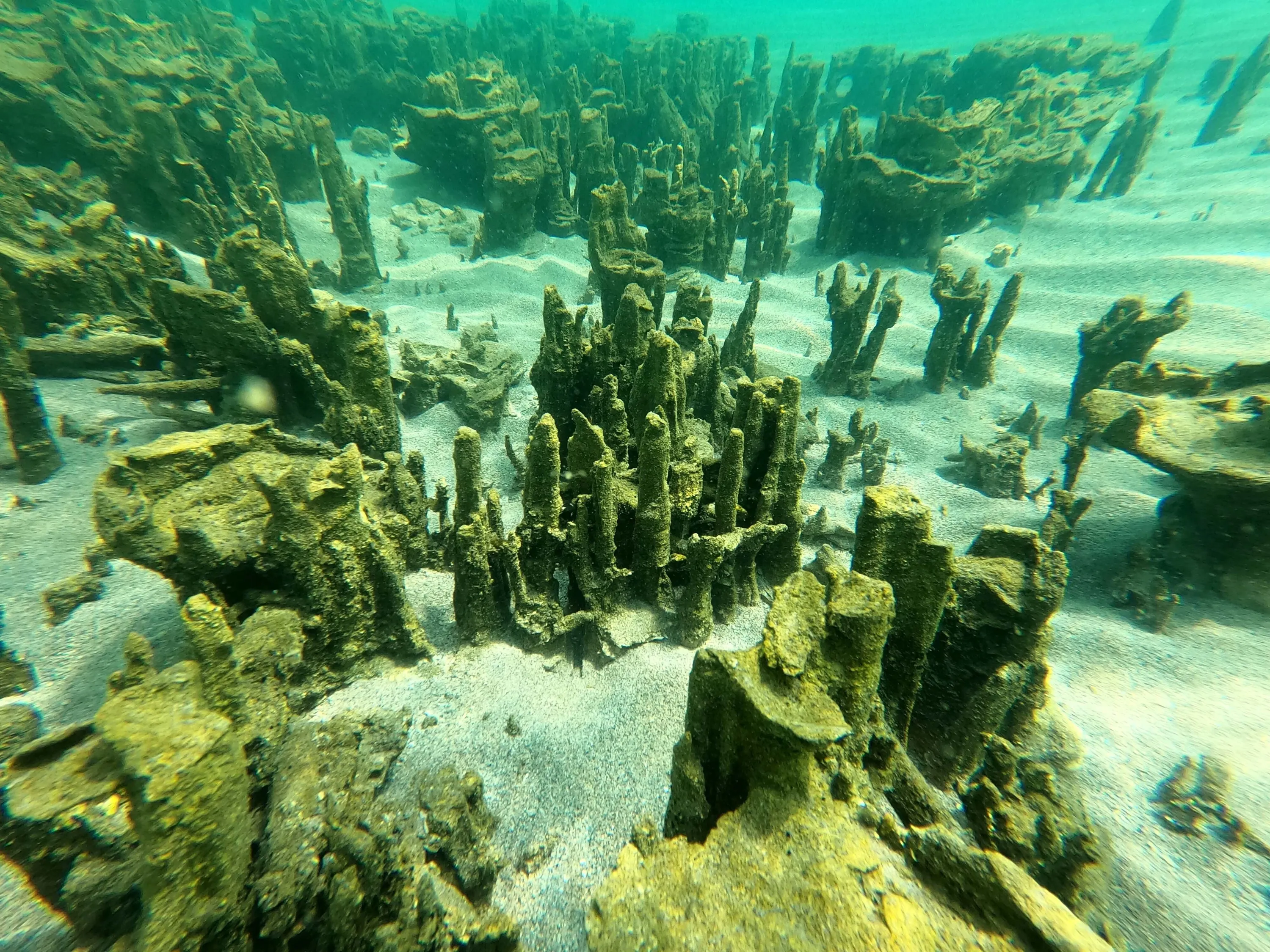 An underwater photo shows the new microbialites discovered at Lake Van in Adilcevaz district of Turkey's Bitlis province on August 08, 2021. (Photo by Ali Ethem Keskin/Anadolu Agency via Getty Images)