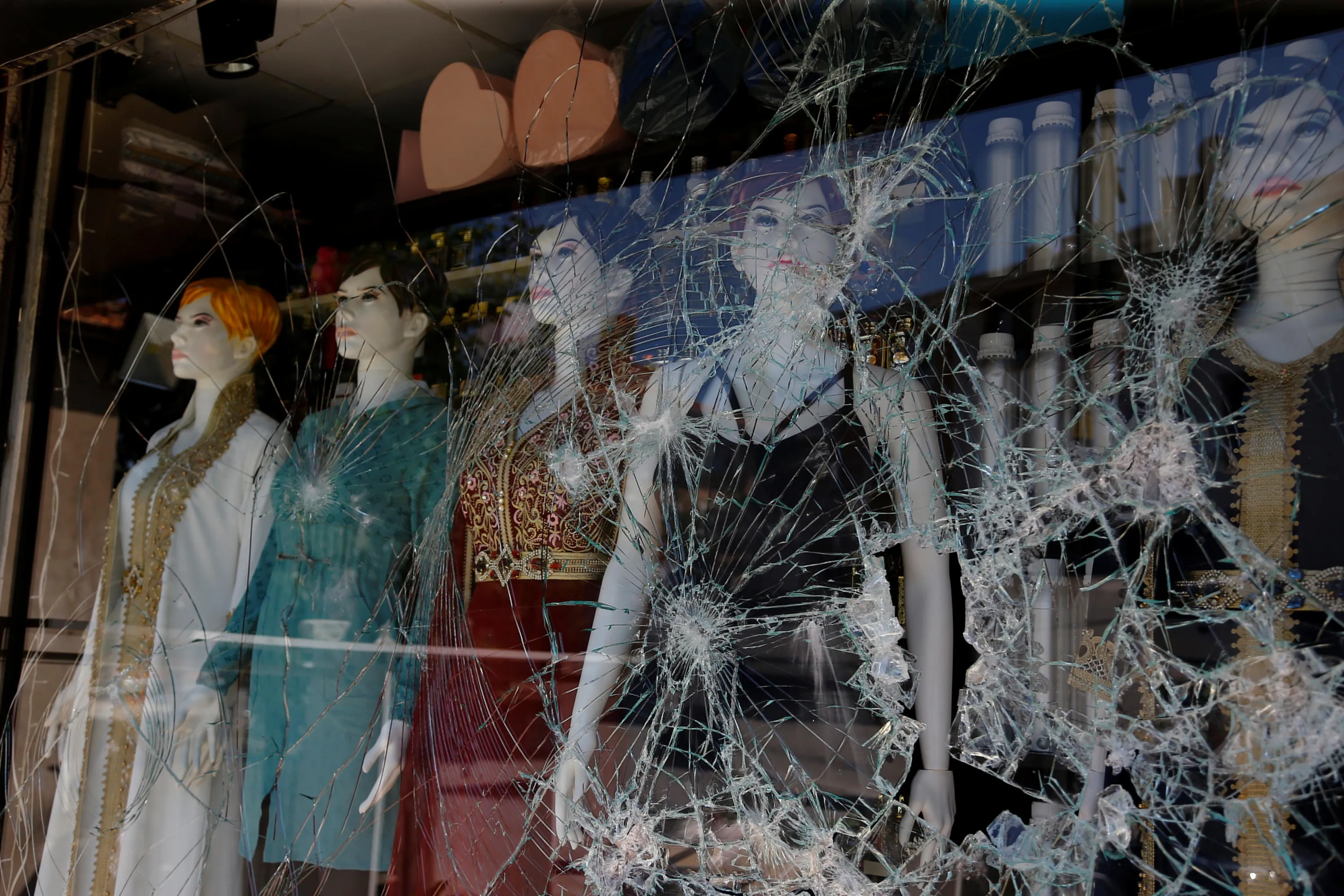 Mannequins are seen behind a broken window of a shop after a crowd of Turks attacked shops and homes belonging to Syrians overnight, in the wake of a street fight that led to a Turkish youth being fatally stabbed, in Ankara, Turkey on August 12, 2021. (Photo by Cagla Gurdogan/Reuters)