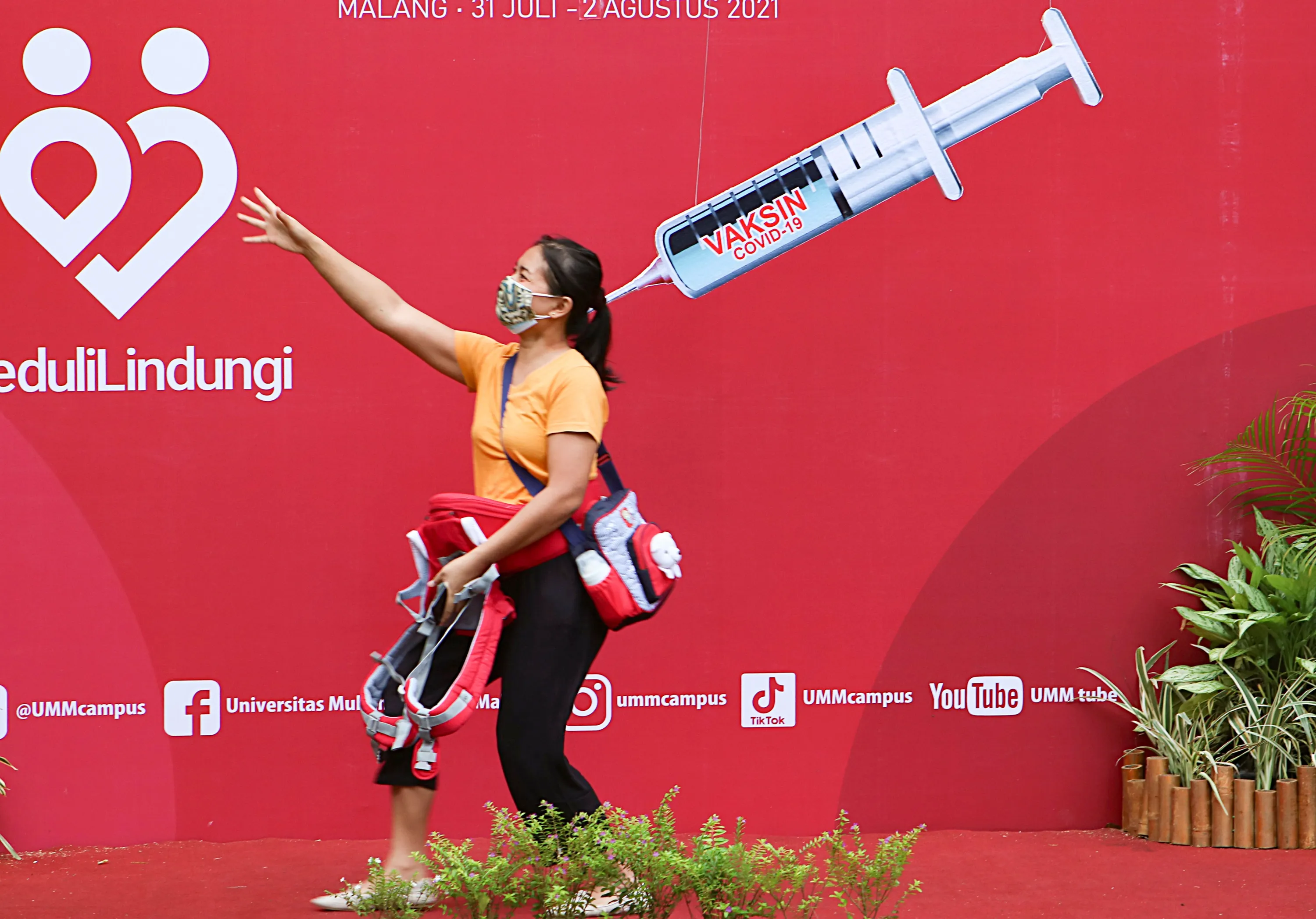 Thousands of residents queued for the first mass vaccination of the Astrazeneca Covid-19 vaccine, when 30,788 people daily positive cases were still high in Indonesia. At the UMM Dome building, Malang, East Java, Indonesia, on August 2, 2021. (Photo by Aman Rochman/NurPhoto/Rex Features/Shutterstock)