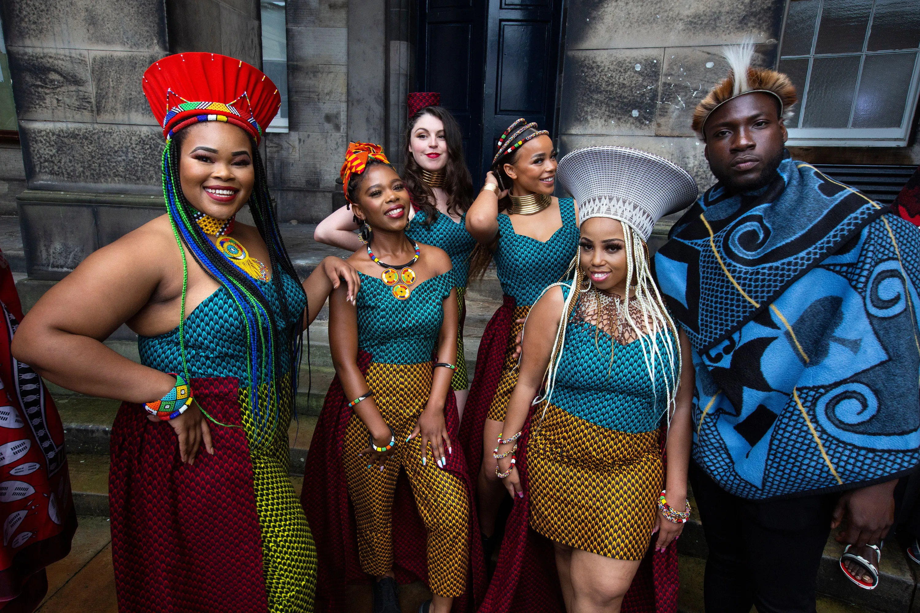 Members of Shona the Musical Choir pose before performing songs from their show set in Scotland and Zimbabwe in Edinburgh, United Kingdom on August 5, 2021. The choir is making its Edinburgh festival debut at Edinburgh Park. (Photo byMurdo MacLeod/The Guardian)