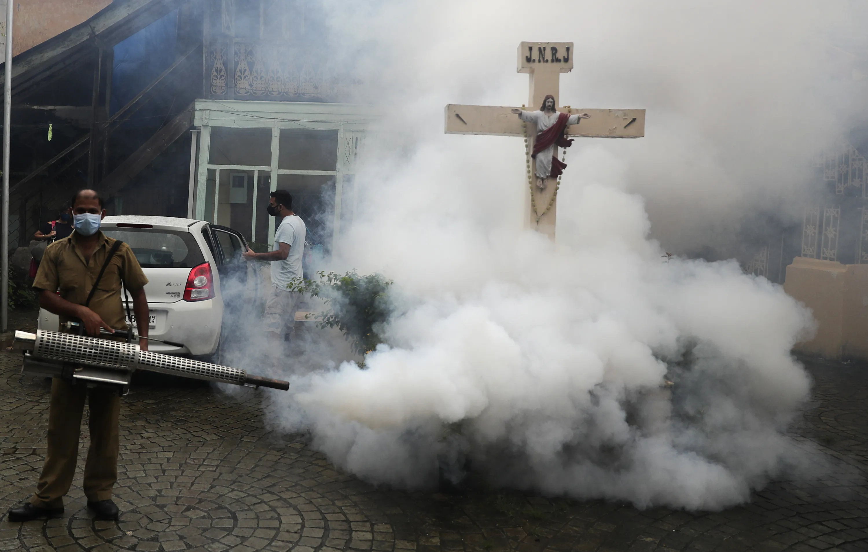 An health worker fumigates an area to control the breeding of mosquitoes in Mumbai, India, Thursday, August 19, 2021. (Photo by Rafiq Maqbool/AP Photo)