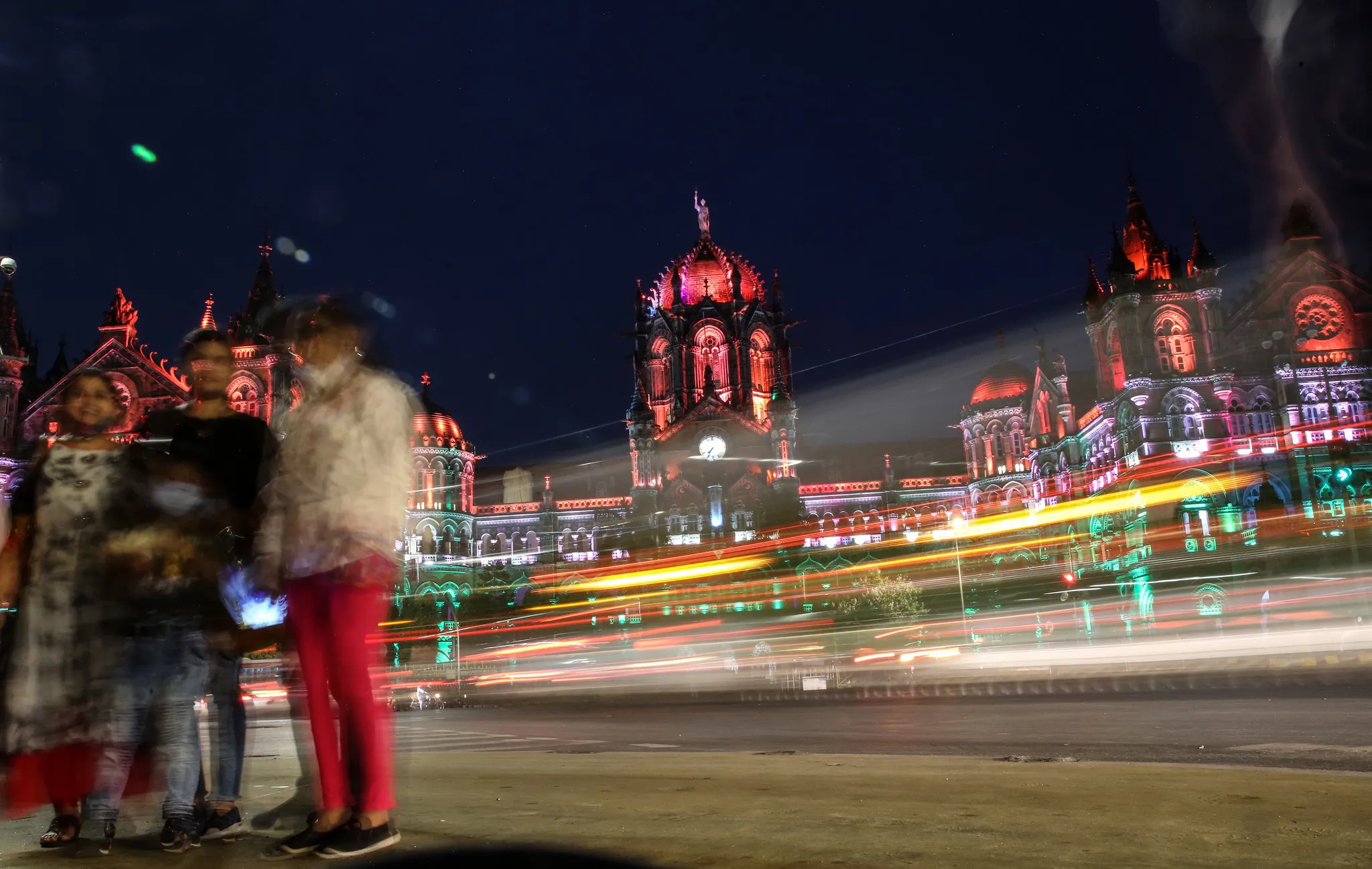 A long exposure photo shows Chhatrapati Shivaji Maharaj Terminus railway station illuminated, ahead of India's Independence Day celebrations in Mumbai, India, 13 August 2021. India will celebrate the 75th anniversary of its independence from British rule on 15 August 2021. (Photo by Divyakant Solanki/EPA/EFE)