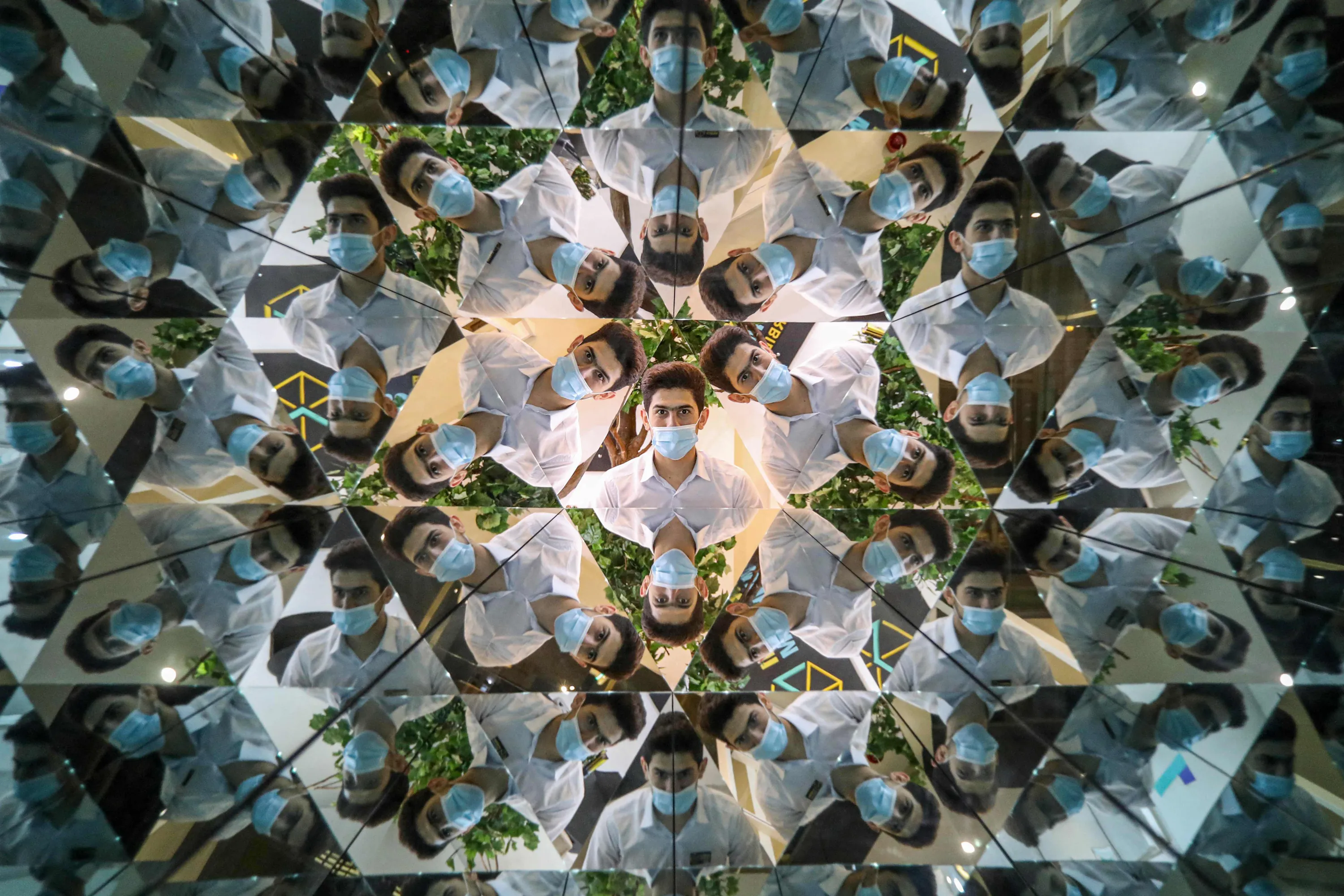 A visitor peeks into a kaleidoscope optical illusion installation, at the Illusion Museum in Arbil, the capital of Iraq's northern autonomous Kurdish region, on April 26, 2021. (Photo by Safin Hamed/AFP Photo)