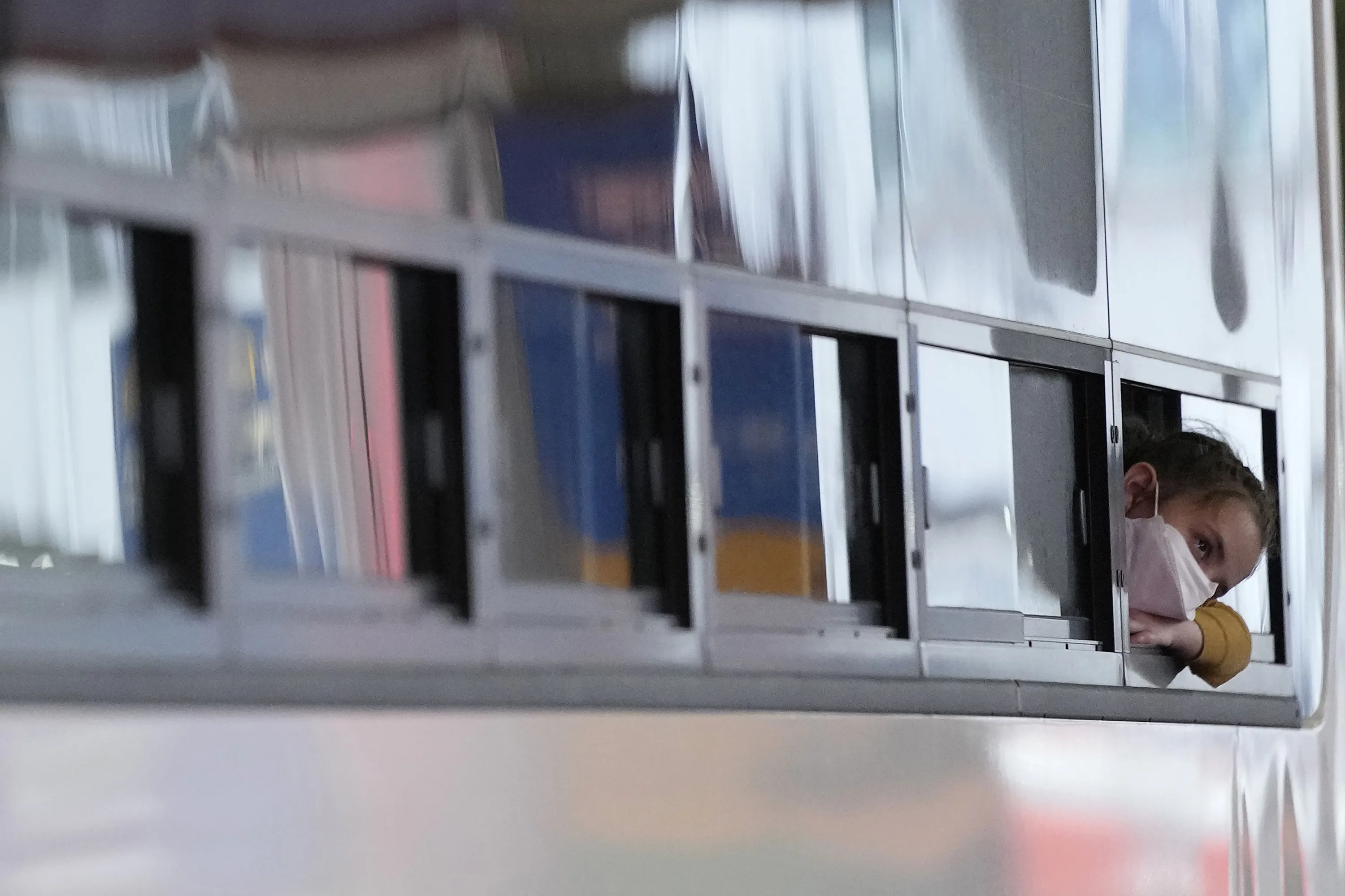 An Afghan girl in a bus waits to leave after arriving with her family at the Incheon International Airport, South Korea, Thursday, August 26, 2021. (Photo by Ahn Young-joon/AP Photo)
