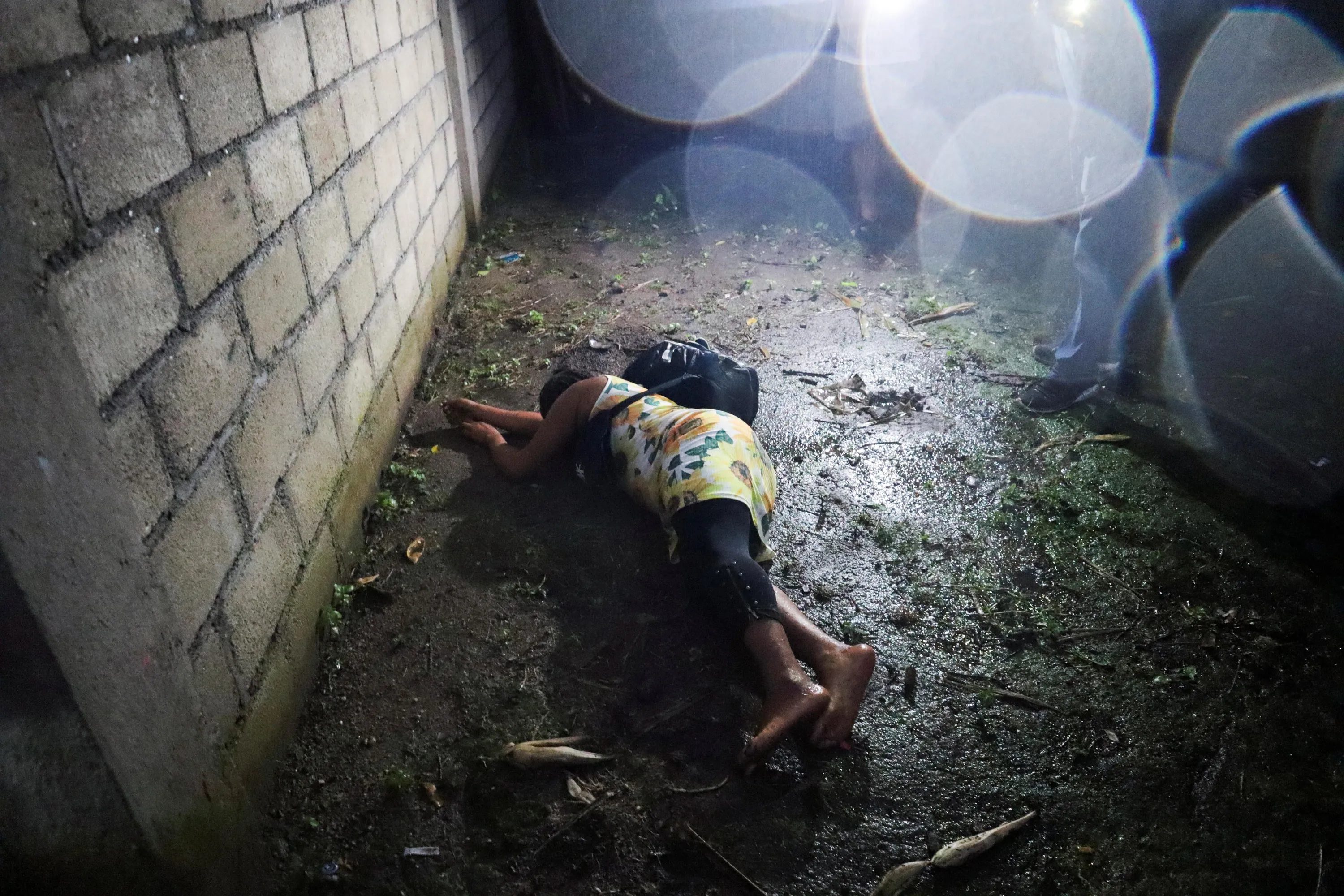A migrant lies on the floor during an operation to halt the progress of a caravan of migrants and asylum seekers from Central America and the Caribbean as they moved toward Mexico City where they hoped to seek expedited asylum proceedings, in Mapastepec, in Chiapas state, Mexico, September 1, 2021. (Photo by Jose Torres/Reuters)