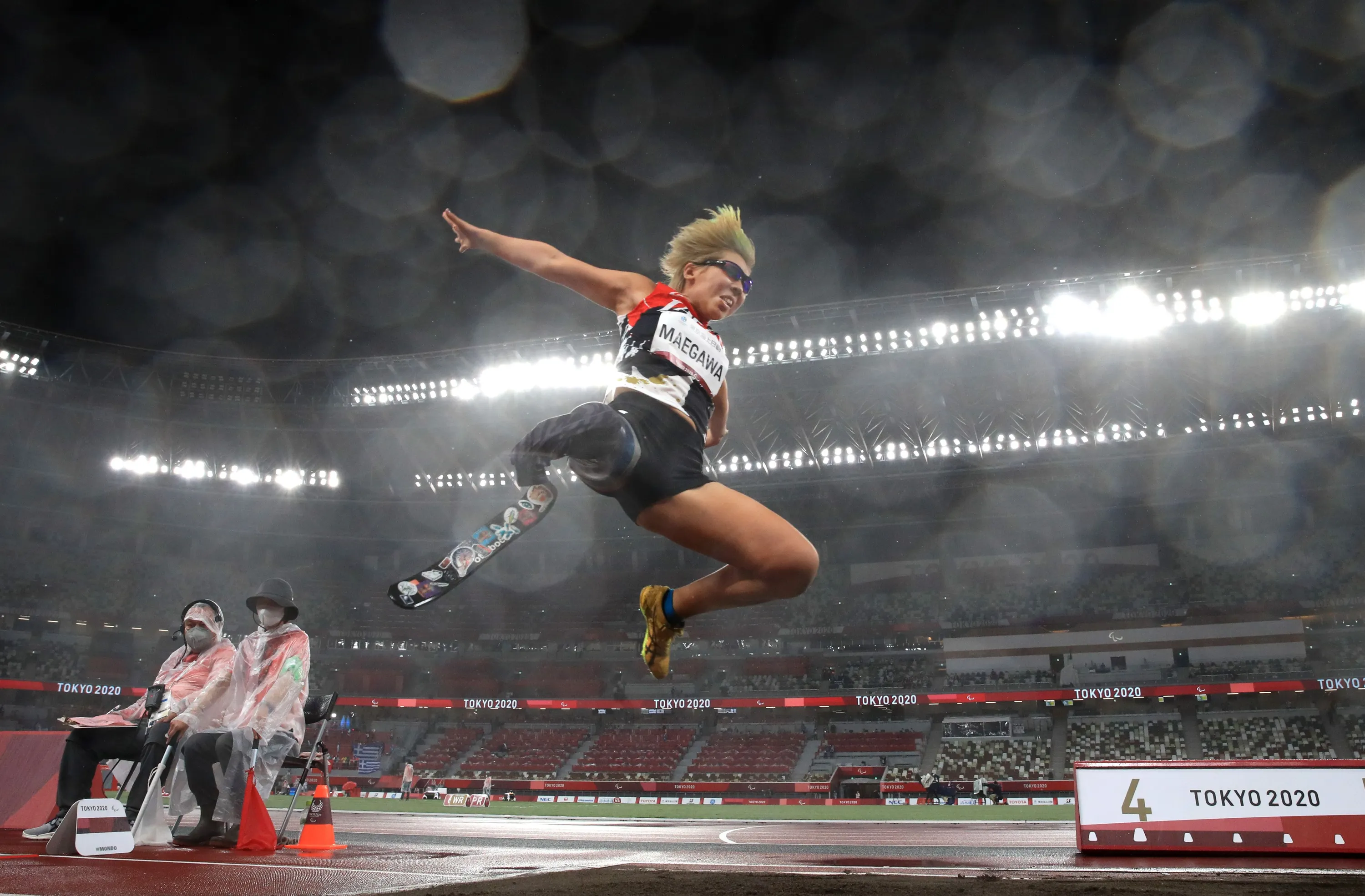 Kaede Maegawa of Team Japan competes in the Women's Long Jump T63 on day 9 of the Tokyo 2020 Paralympic Games at Olympic Stadiumon September 02, 2021 in Tokyo, Japan. (Photo by Alex Pantling/Getty Images)
