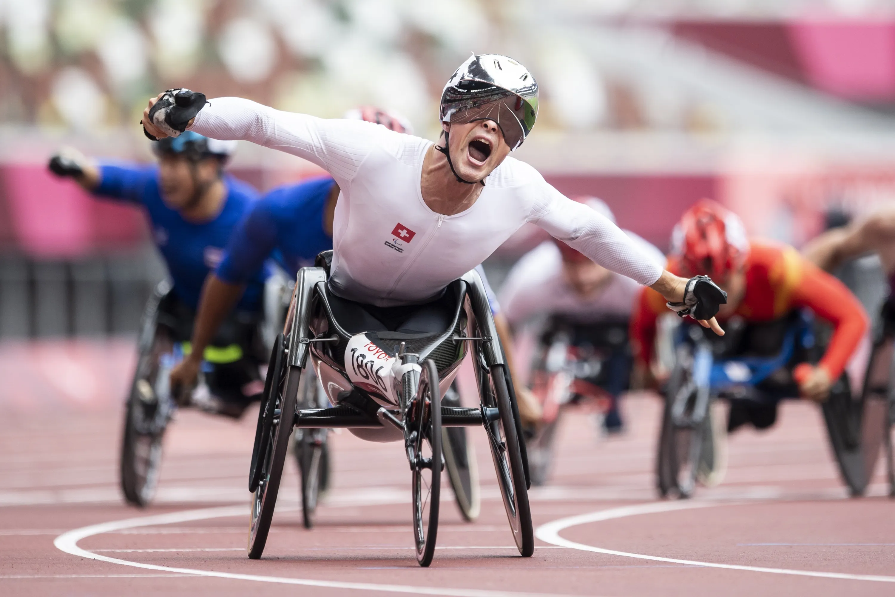 Marcel Hug of Switzerland reacts after winning the Men's 1500m T53/54 competition at the 2020 Tokyo Summer Paralympics Games at the Olympic Stadium in Tokyo, Japan, Tuesday, August 31, 2021. (Photo by Ennio Leanza/Keystone)