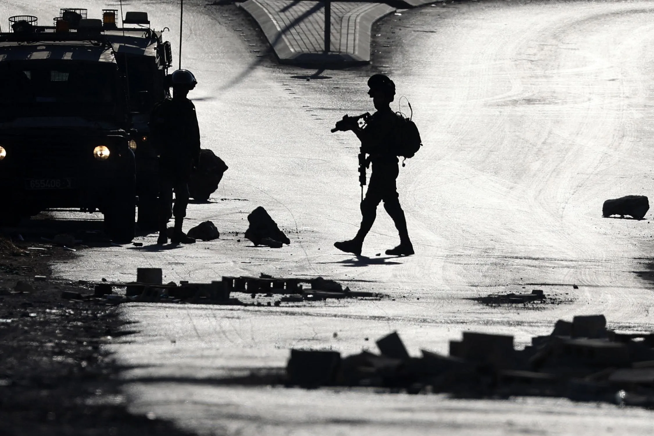 Israeli soldiers and Palestinian demonstrators clash as protesters demand that the army hands over the body of man who was shot dead by Israeli forces the previous night, in the village of Beita, in the occupied West Bank, on July 28, 2021. (Photo by Jaafar Ashtiyeh/AFP Photo)