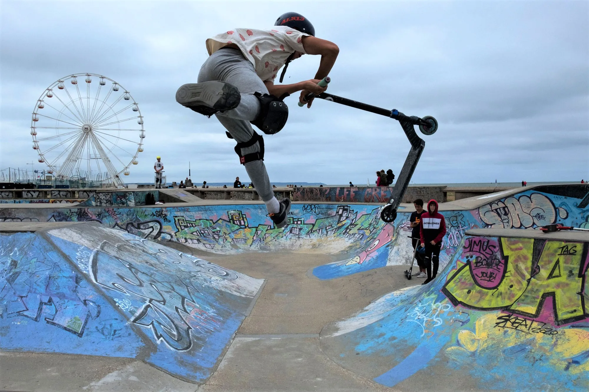Young people enjoy a skate park in Le Havre, Northern France's Normandys region, on August 19, 2021. (Photo by Joel Saget/AFP Photo)