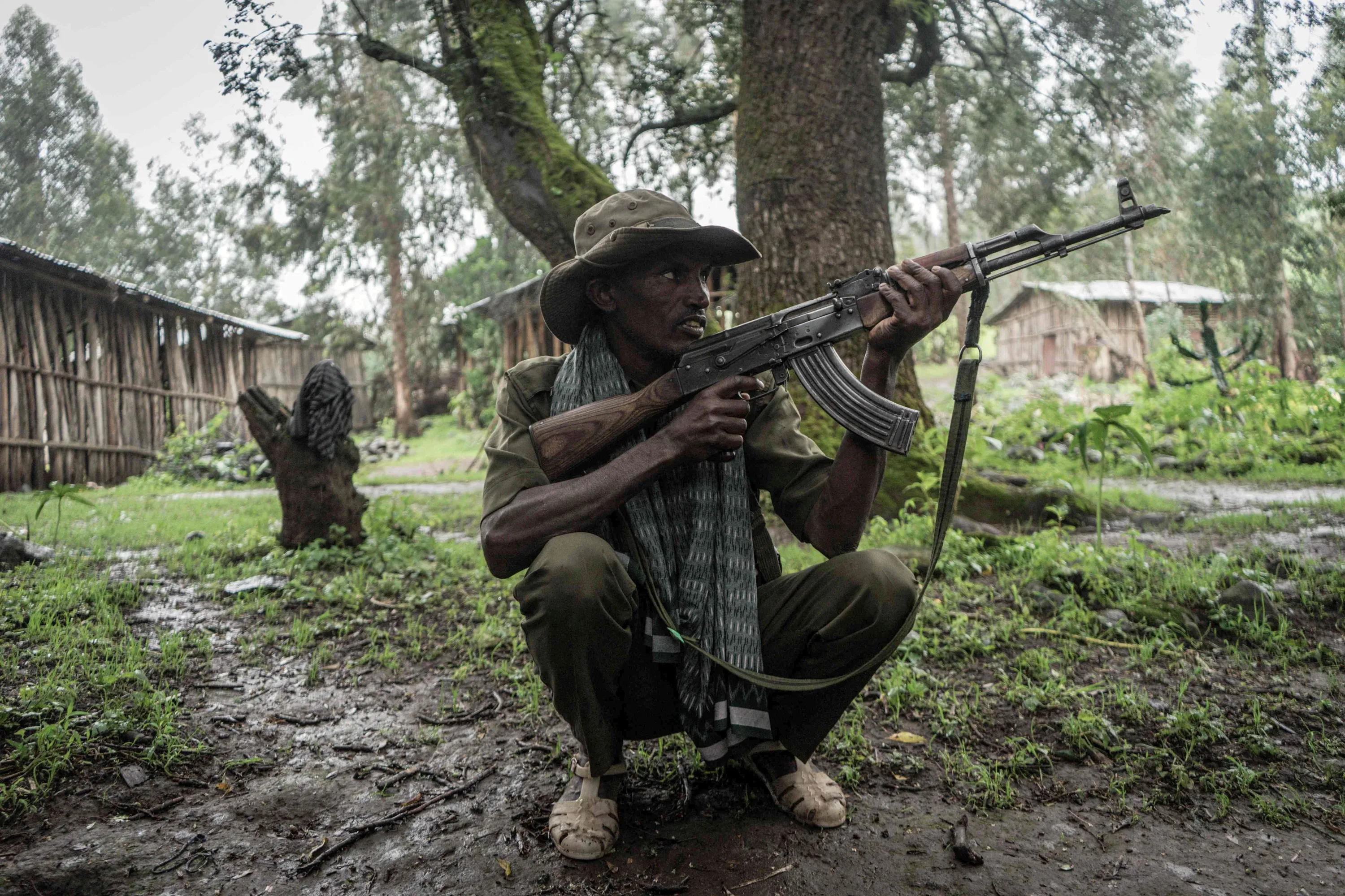 An Amhara militia member poses fro a photograph near the village of Chenna, 95 kilometres northeast of the city of Gondar, Ethiopia, on September 14, 2021. (Photo by Amanuel Sileshi/AFP Photo)