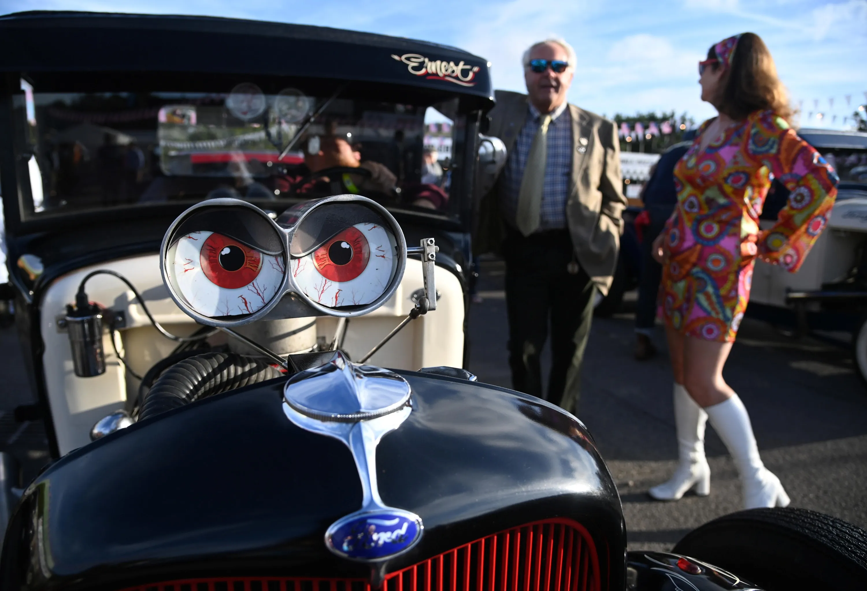 Motoring enthusiasts attend the Goodwood Revival, a three-day historic car racing festival in Goodwood, Chichester, southern Britain, September 17, 2021. (Photo by Toby Melville/Reuters)