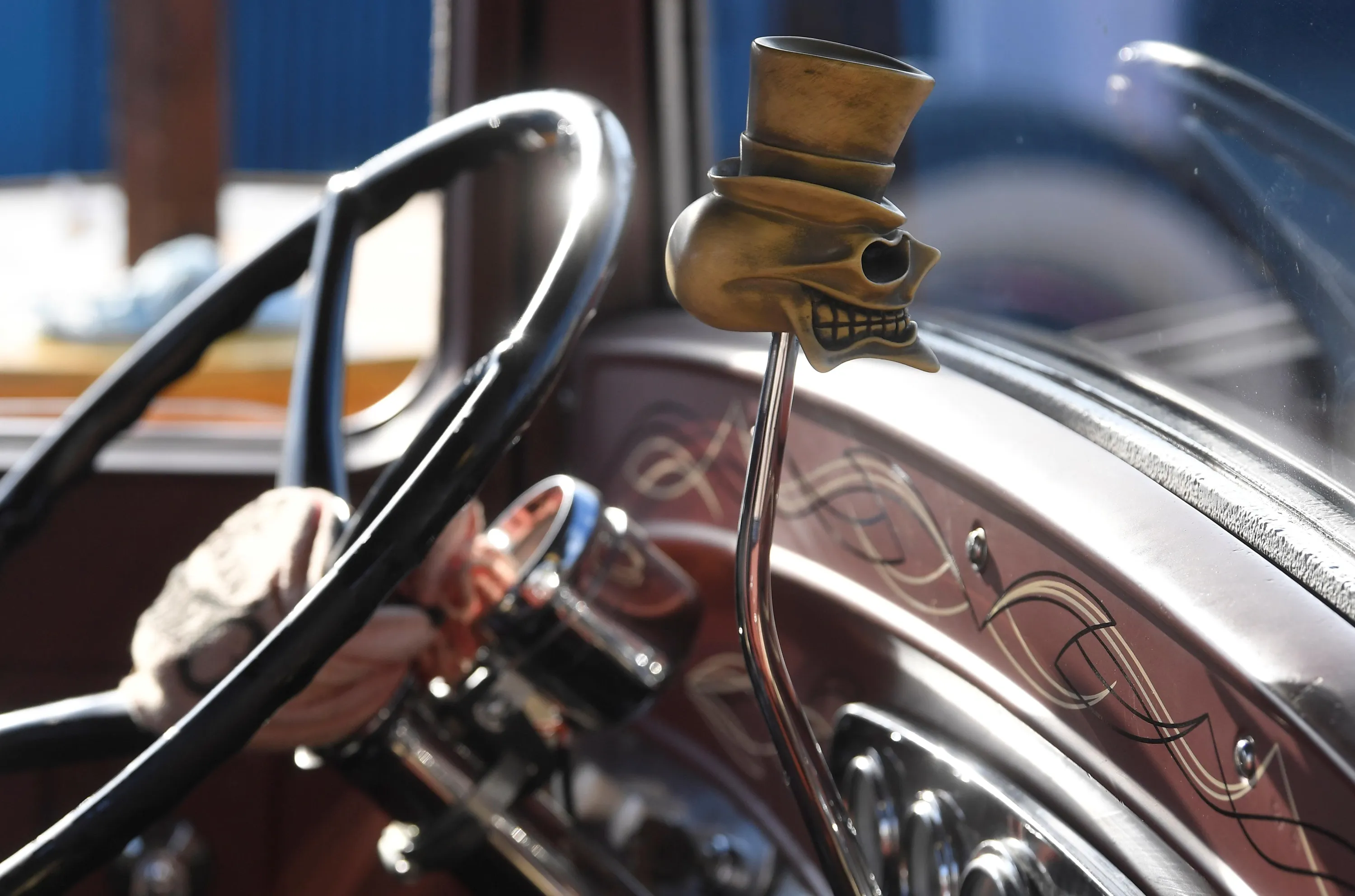 Details of a car gear stick is pictured, as motoring enthusiasts attend the Goodwood Revival, a three-day historic car racing festival in Goodwood, Chichester, southern Britain, September 17, 2021. (Photo by Toby Melville/Reuters)