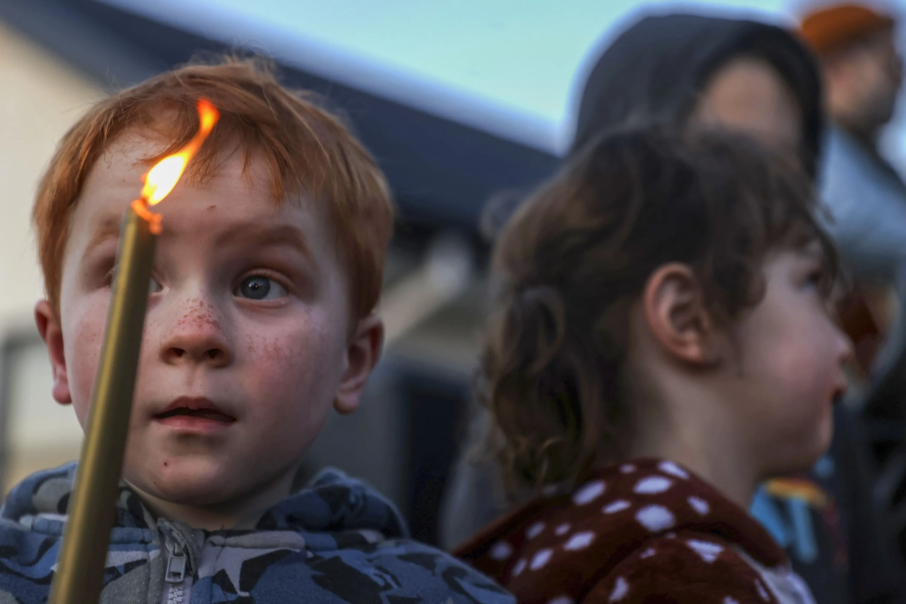 Children hold a candle light vigil outside the home in Timaru, New Zealand, Thursday, September 23, 2021 for sisters Maya, Karla and Liane Dickason, originally from South Africa, who were killed in their home on Sept. 16. People in the town of Timaru held an evening vigil outside the home of three young girls who were killed last week in a crime that shocked New Zealand. The girls' mother Lauren Dickason has been charged with murder. (Photo by George Heard/New Zealand Herald via AP Photo)