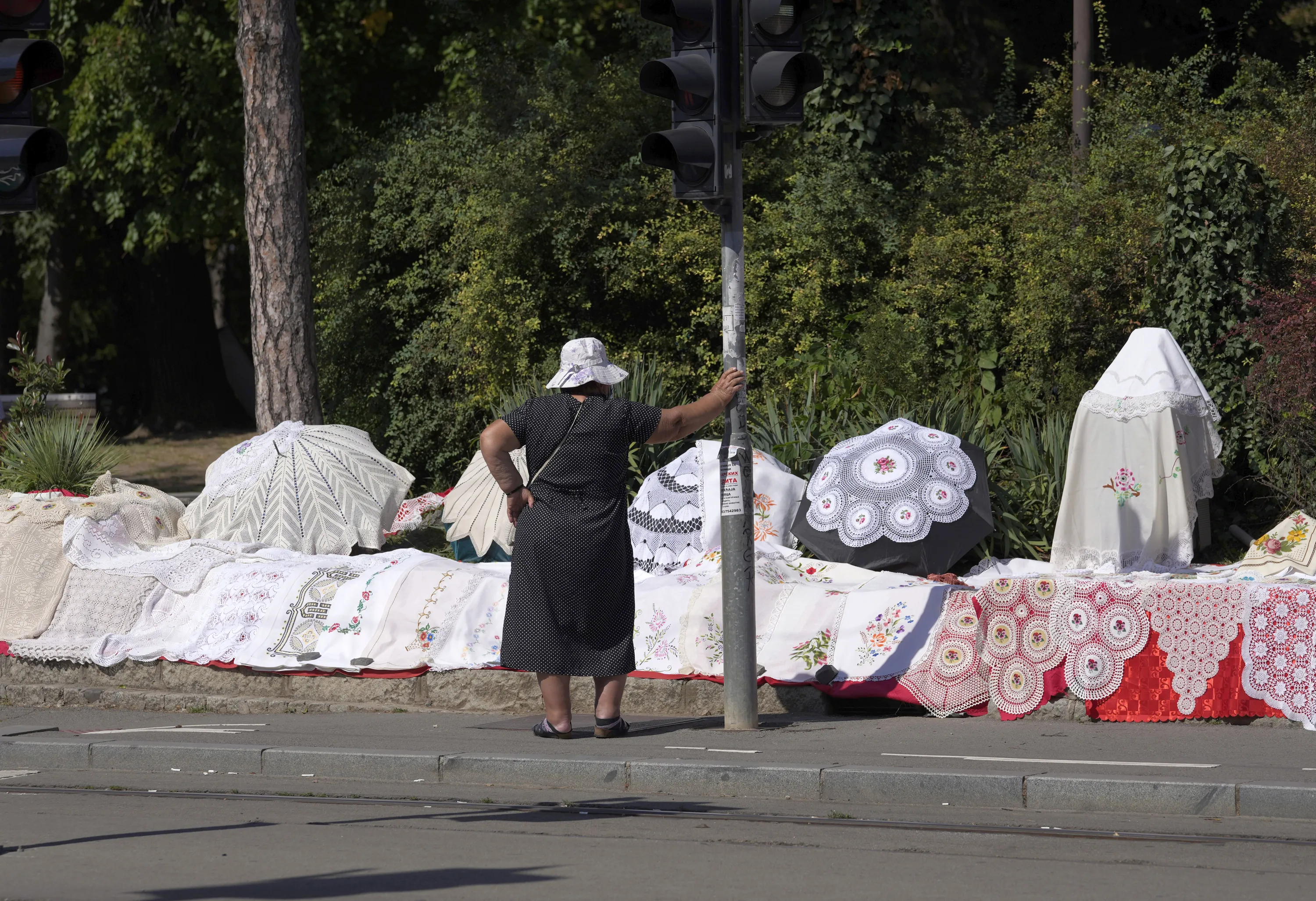 A street vendor sells handmade crochet at an entrance to Veliki Kalemegdan Park in Belgrade, Serbia, Friday, September 10, 2021. (Photo by Darko Vojinovic/AP Photo)