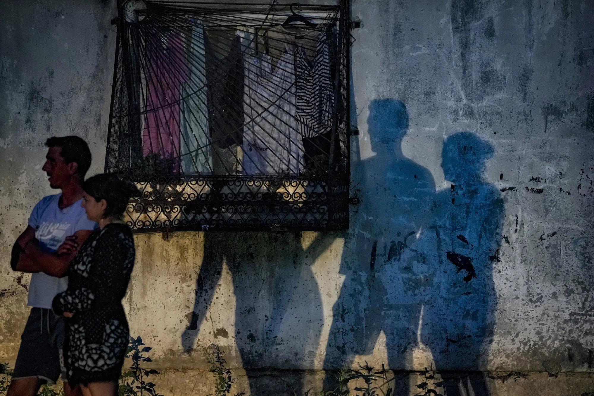People watch an outdoor performance by Alex Fifea, in the play “You Did Not See Anything”, which explores police abuse against vulnerable members of society, during the “Kathe, Akana!” or “here and Now!” international Roma theatre festival, outside apartment blocks in a poor area of the Romanian capital Bucharest, Romania, Tuesday, August 31, 2021. According to the organizers the festival aims to promote cultural diversity, non-discrimination and combat the stereotypes on Roma. (Photo by Vadim Ghirda/AP Photo)