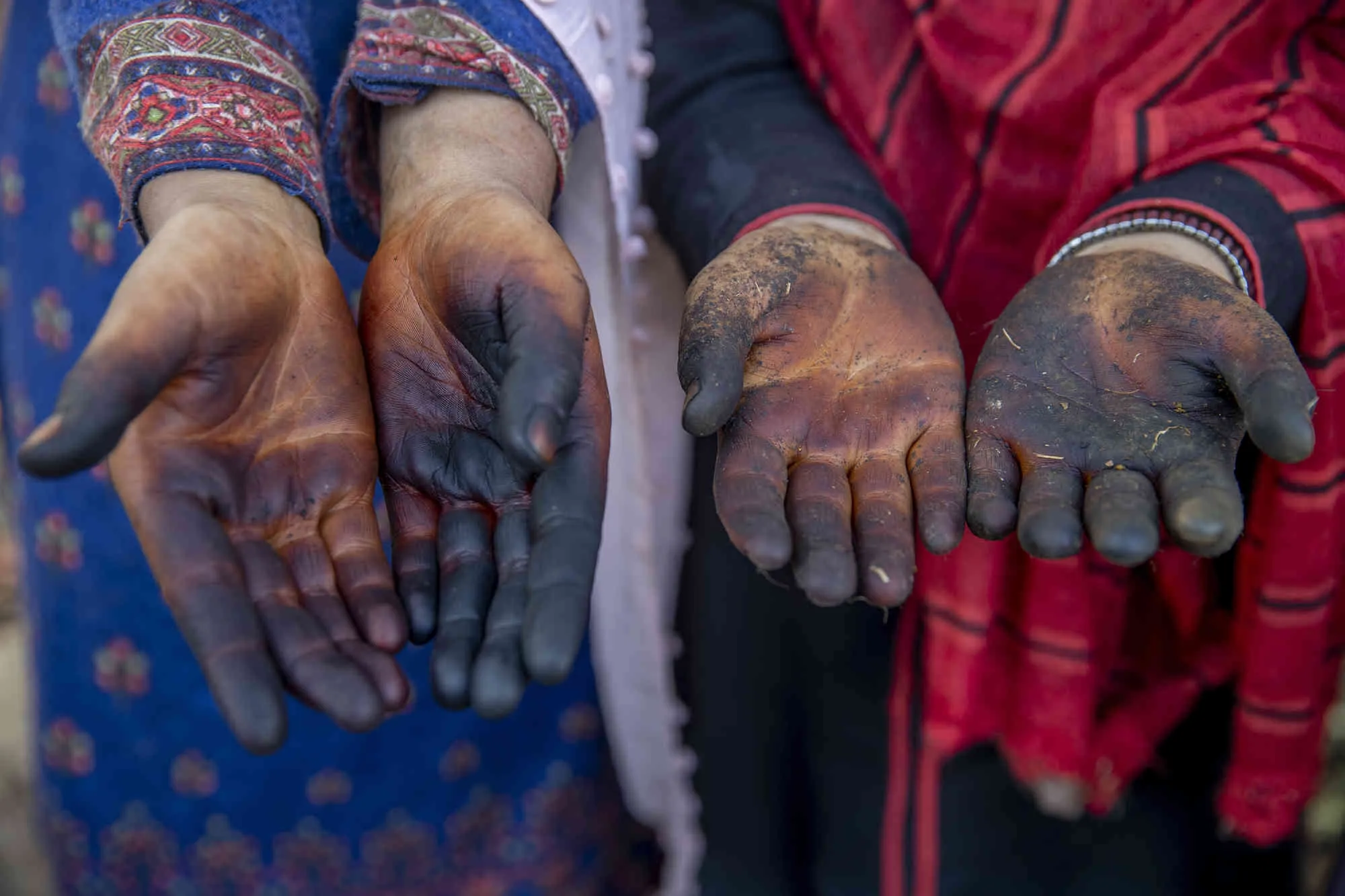 Kashmiri villagers show their hands stained by cleaning and shelling walnuts in Budgham area, northeast of Srinagar, Saturday, September 25, 2021. (Photo by Dar Yasin/AP Photo)