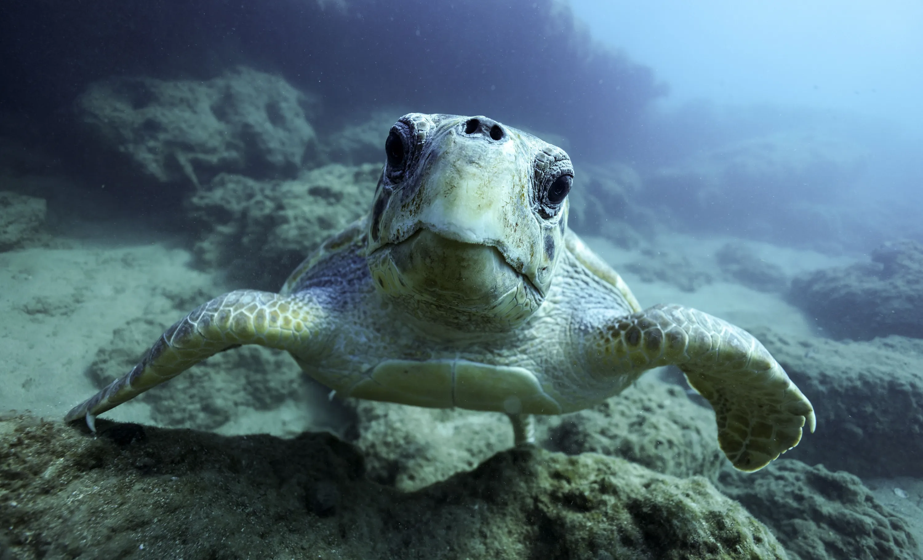A turtle in the Aegean Sea off the island of Crete, Greece on September 28, 2021. (Photo by Sergei Bobylev/TASS)