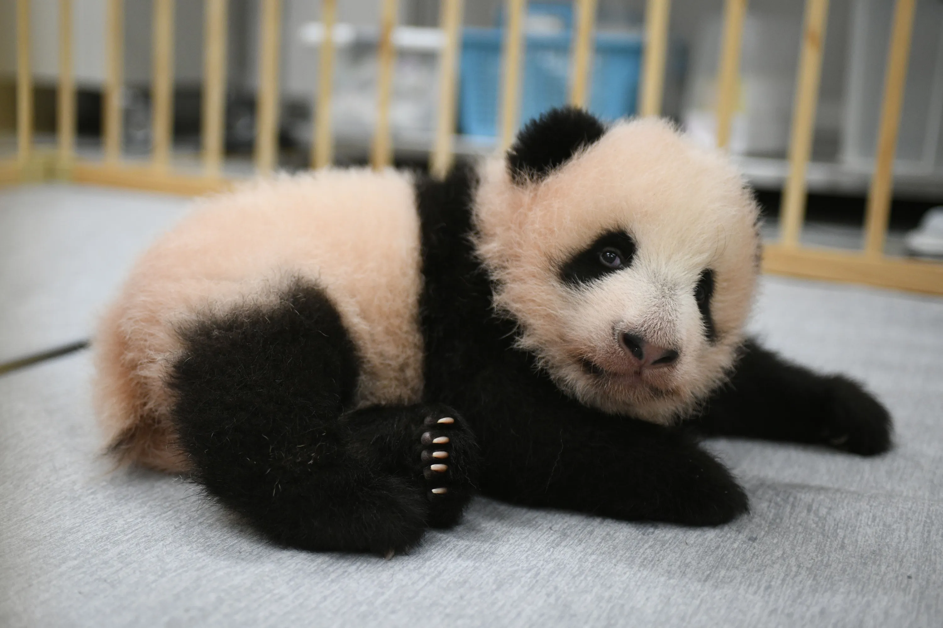 This photo released by Tokyo Zoological Park Society shows Lei Lei, one of giant panda twins, 103 days after she was born at Ueno Zoo in Tokyo Monday, October 4, 2021. The twin cubs, Lei Lei and her brother Xiao Xiao, which were palm-size pink creatures when born on June 23, got their names Friday, Oct. 8, 2021, chosen from hundreds of thousands of suggestions sent from fans around the country. (Photo by Tokyo Zoological Park Society via AP Photo)