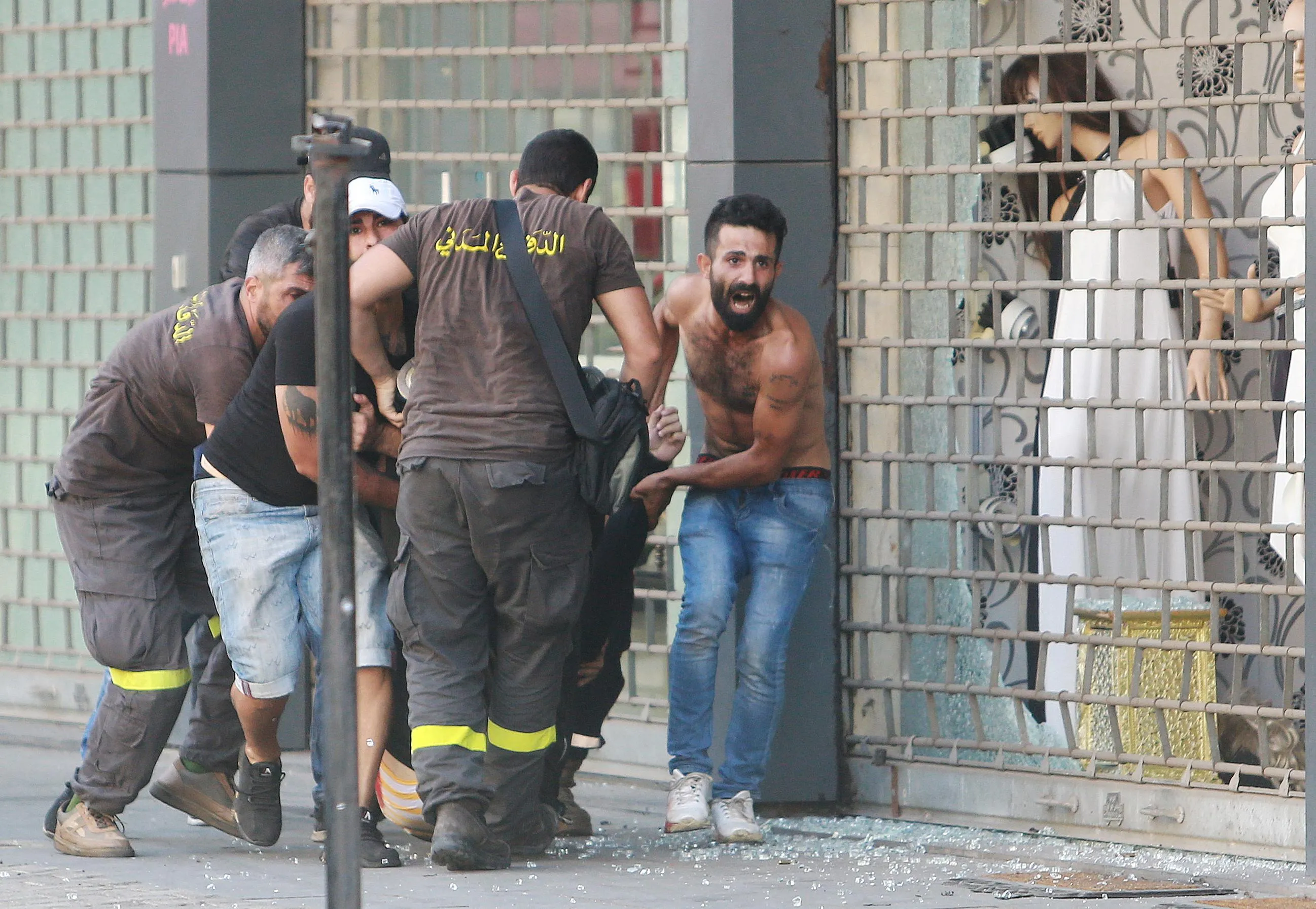 People evacuate a casualty after gunfire erupted in Beirut, Lebanon on October 14, 2021. (Photo by Aziz Taher/Reuters)