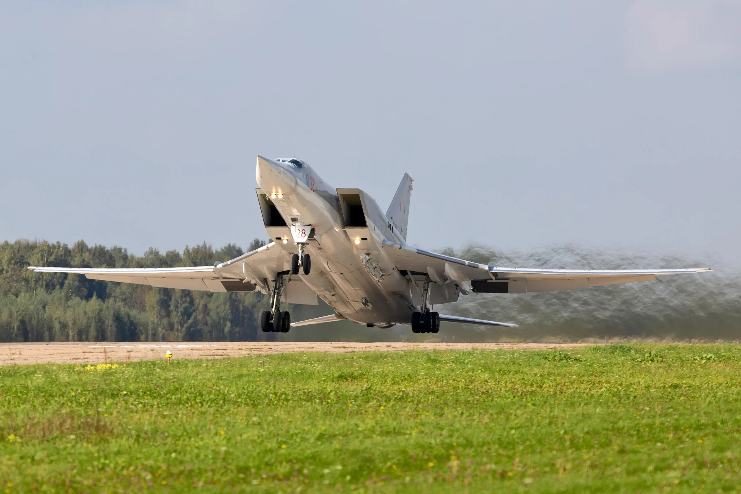 A Russian Tupolev Tu-22M3 strategic bombe takes off from Shaykovka Air Base during the active phase of the military exercises “Zapad-2021” staged by the armed forces of Russia and Belarus in Kaluga Region, Russia, September 13, 2021. (Photo by Russian Defence Ministry Press Service/Handout via Reuters)