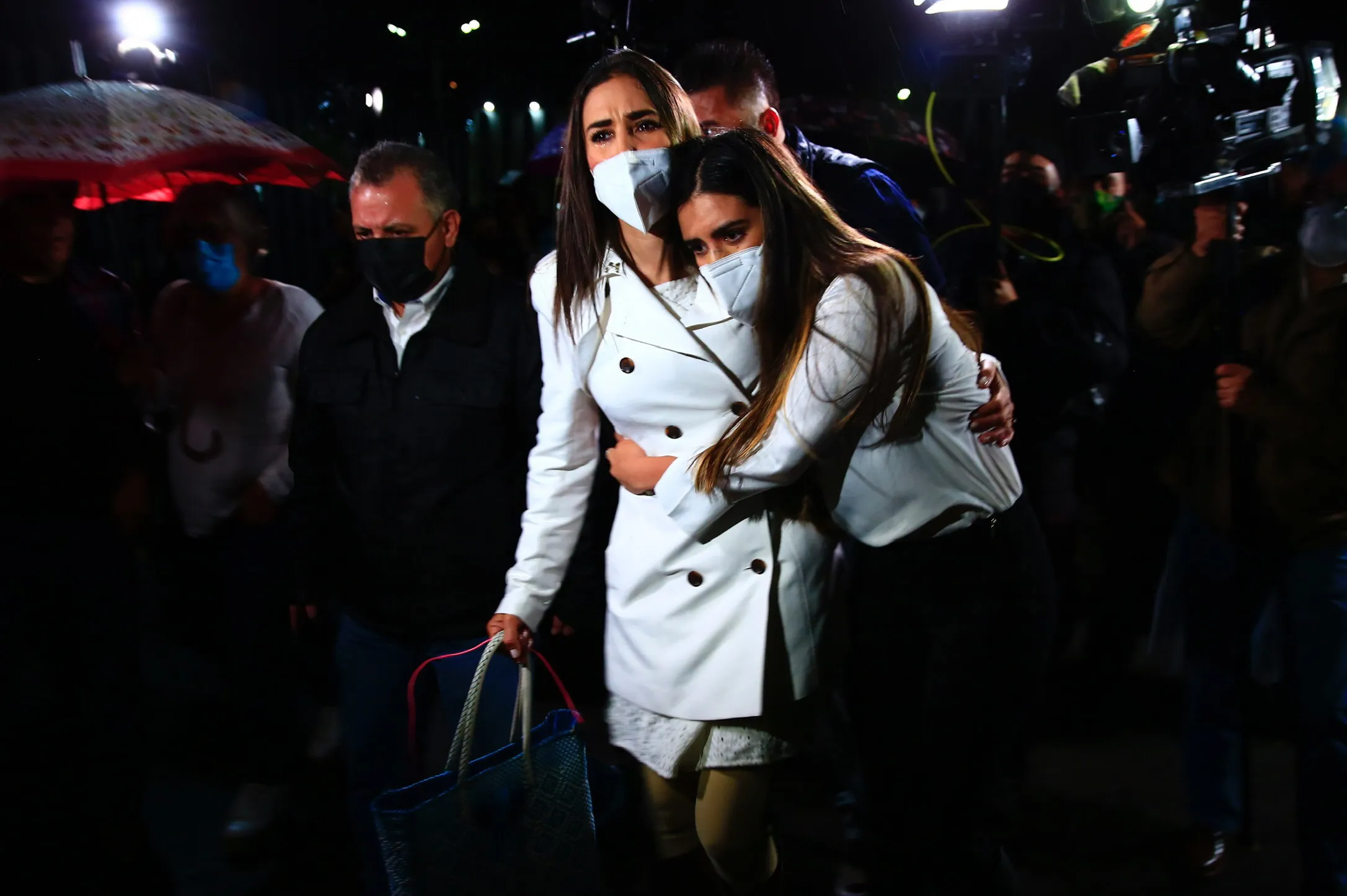 Mariana Moguel Robles (C-L) daughter of the former head of the Secretariat of Social Development (SEDESOL) Rosario Robles, cries after hearing the decision of a judge in the courts of the South Prison in Mexico City, Mexico 20 October 2021. A Mexican judge on 20 October refused to release Rosario Robles, Secretary of Development in the Government of Enrique Pena Nieto (2012-2018), in preventive detention for more than two years for the corruption case known as the Master Scam. (Photo by Carlos Ramírez/EPA/EFE)