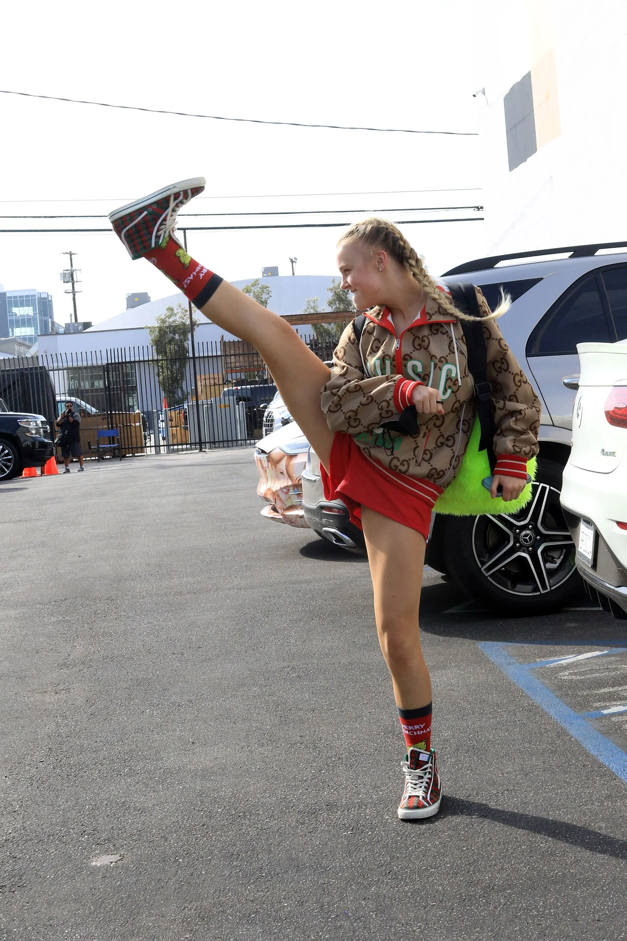 JoJo Siwa all fired up as she heads into practice in Los Angeles on October 6, 2021. The teen gets into it with some kicks and shows how excited she is for week 4 of Dancing with the Stars. (Photo by The Mega Agency)