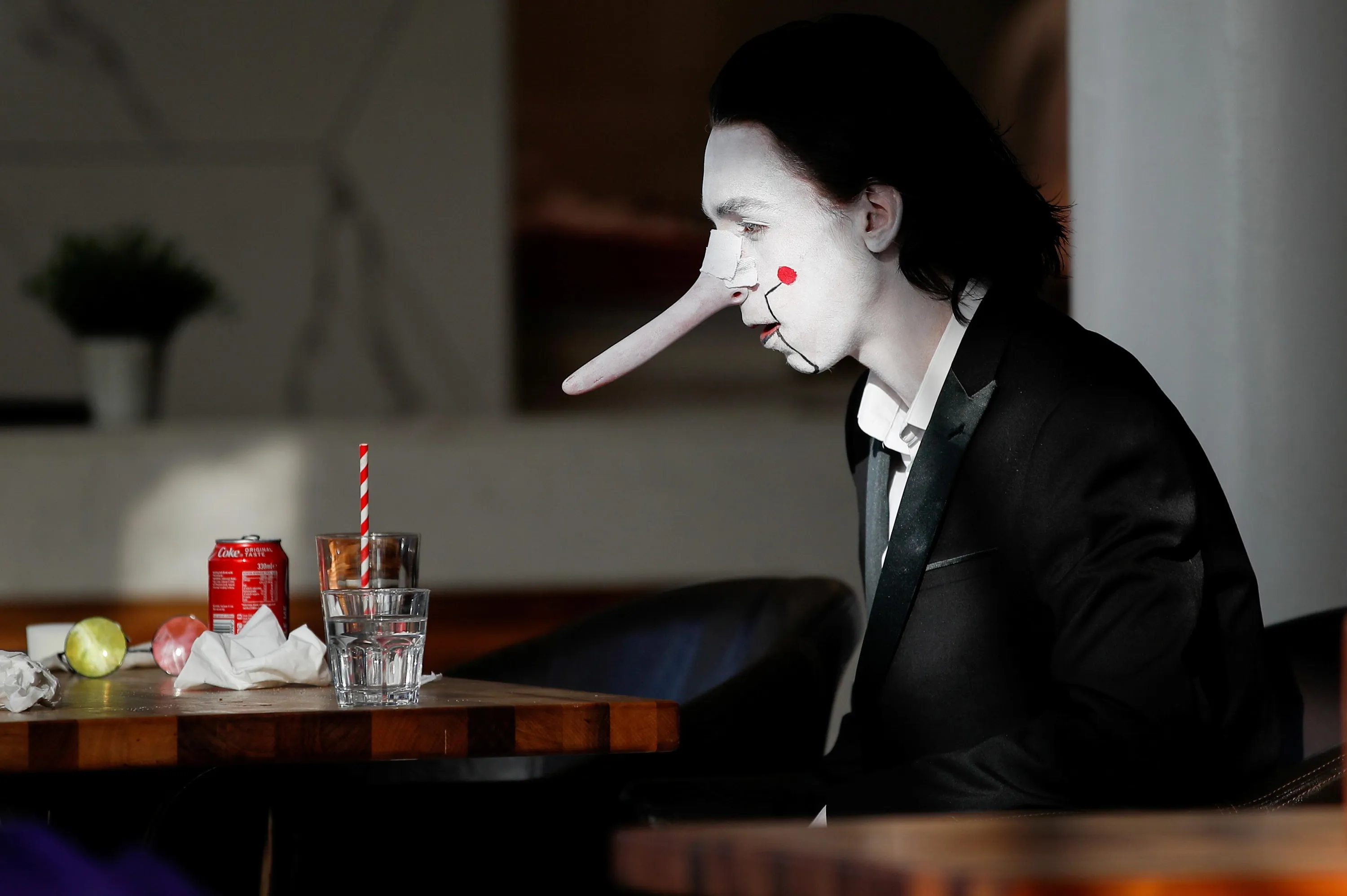A person wears a costume at a cafeteria during the MCM Comic Con event at ExCeL in London, Britain, October 24, 2021. (Photo by Peter Nicholls/Reuters)