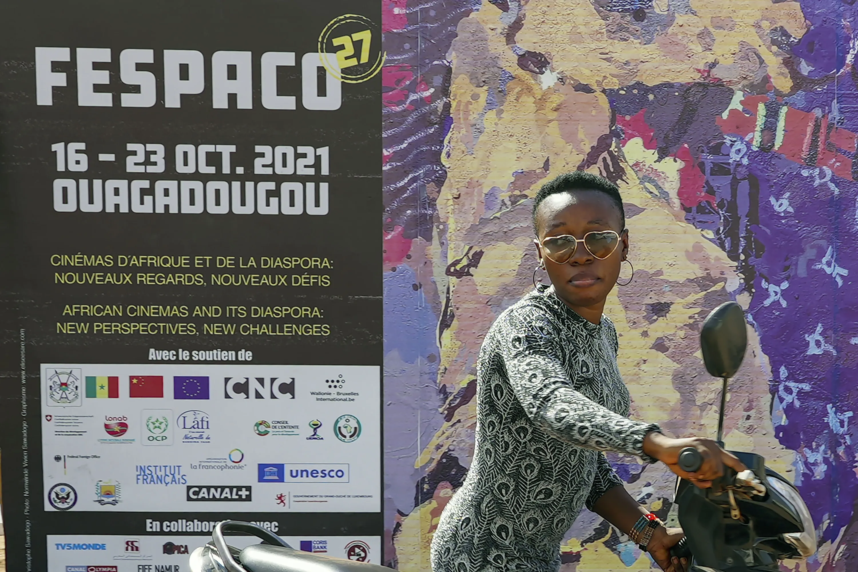 A woman pushes her scooter past the entrance of FESPACO (Pan-African Film & TV Festival of Ouagadougou) in Ouagadougou, Burkina Faso, Friday October 15, 2021. The event, now in its 52nd year, is attracting filmmakers and moviegoers from across the continent and the globe. (Photo by Sam Mednick/AP Photo)
