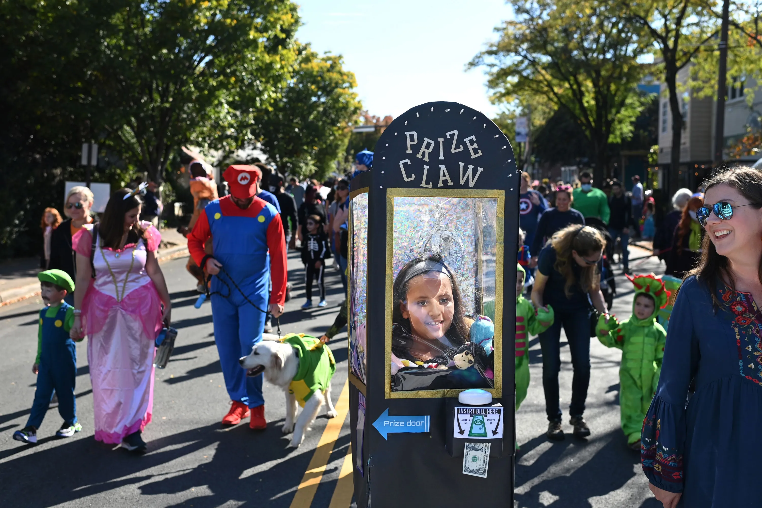 Zahra Hersi, center, of Fairfax, VA takes part with her family in the annual Del Ray Halloween Parade on Sunday October 24, 2021 in Alexandria, VA. The parade was cancelled last year. Masks were encouraged since so many unvaccinated children were present. Mask and vaccine mandates are one of many topics that may help decide upcoming political races. The race for Governor of Virginia is a microcosm of the issues that are important to voters nationally. (Photo by Matt McClain/The Washington Post)