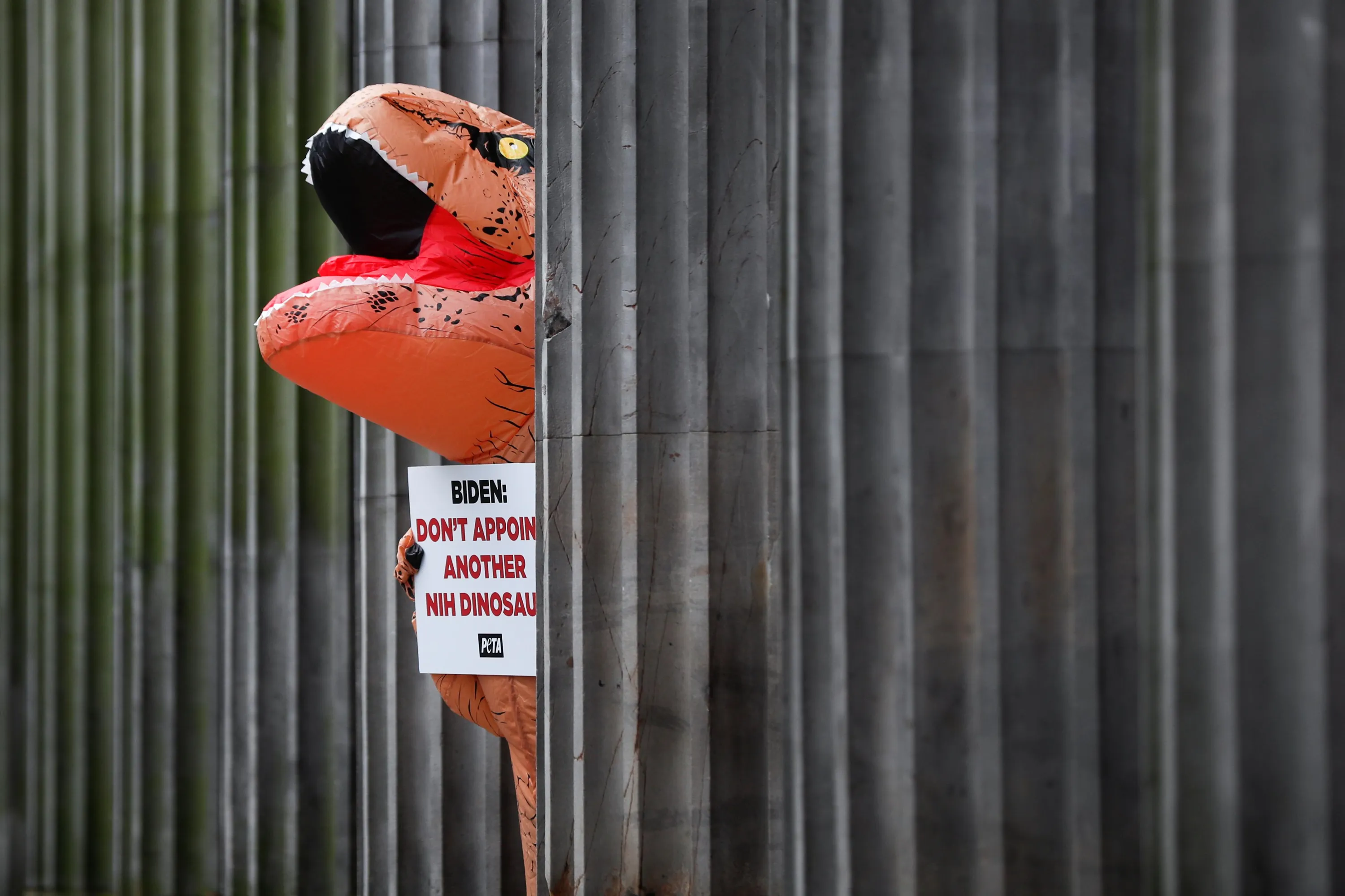 A demonstrator in a dinosaur costume holds a sign as the UN Climate Change Conference (COP26) takes place in Glasgow, Scotland, Britain, November 1, 2021. The U.N. climate summit in Glasgow gathers leaders from around the world, in Scotland's biggest city, to lay out their vision for addressing the common challenge of global warming. (Photo by Lee Smith/Reuters)