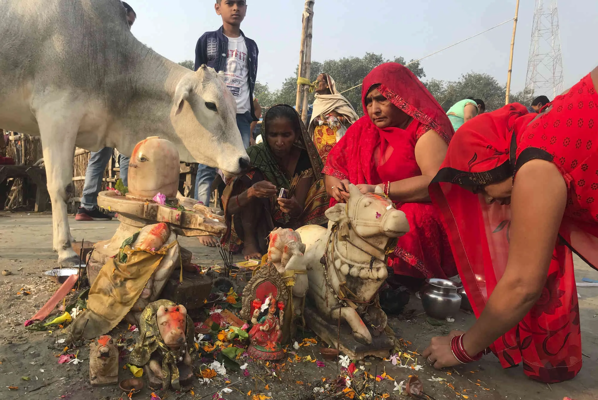 Hindu women perform morning rituals on the banks of the Saryu River in Ayodhya, India, Tuesday, November 2, 2021. (Photo by Rajesh Kumar Singh/AP Photo)
