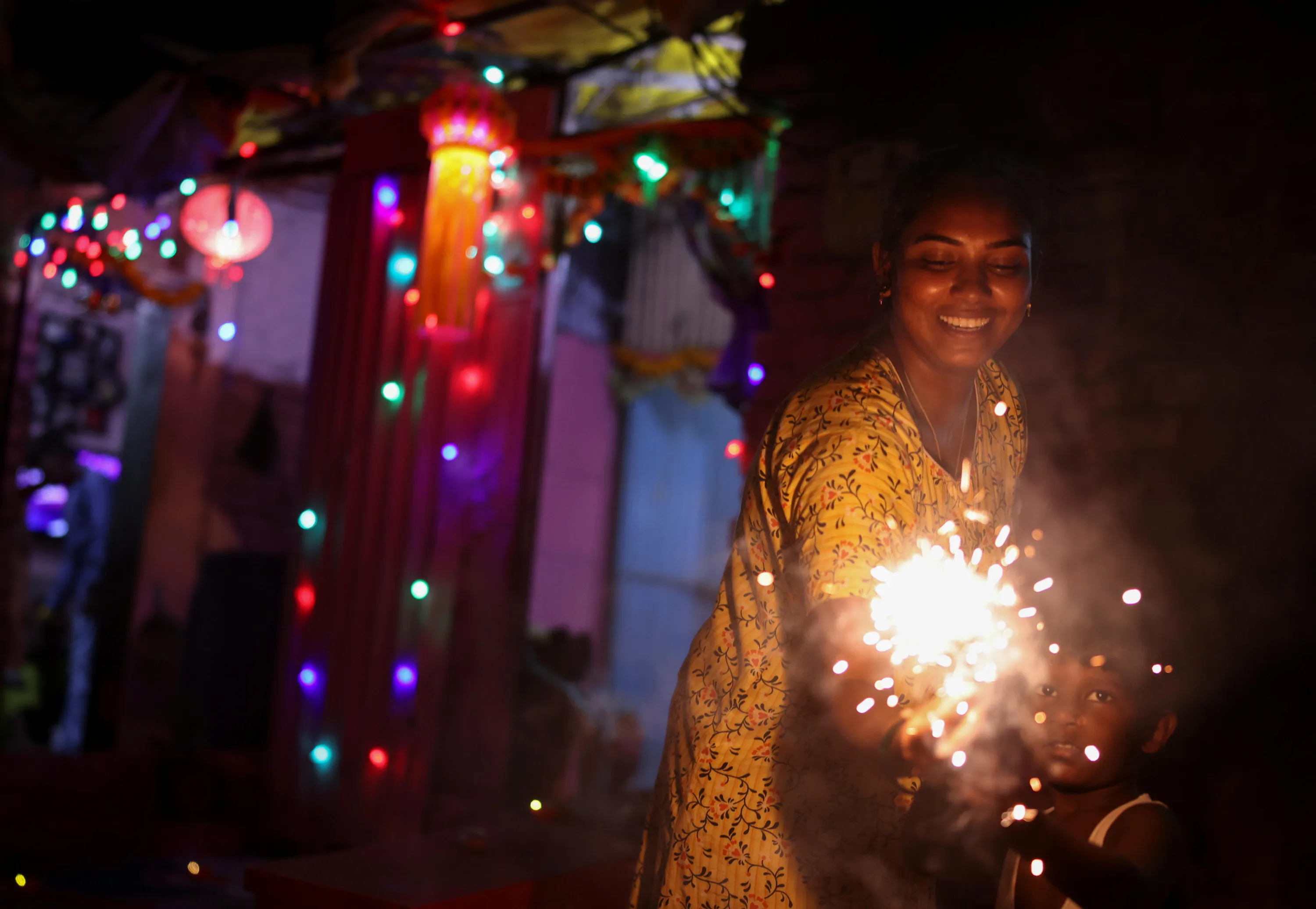A woman and her son hold firecrackers during Diwali, the Hindu festival of lights, in Mumbai, India, November 4, 2021. (Photo by Francis Mascarenhas/Reuters)