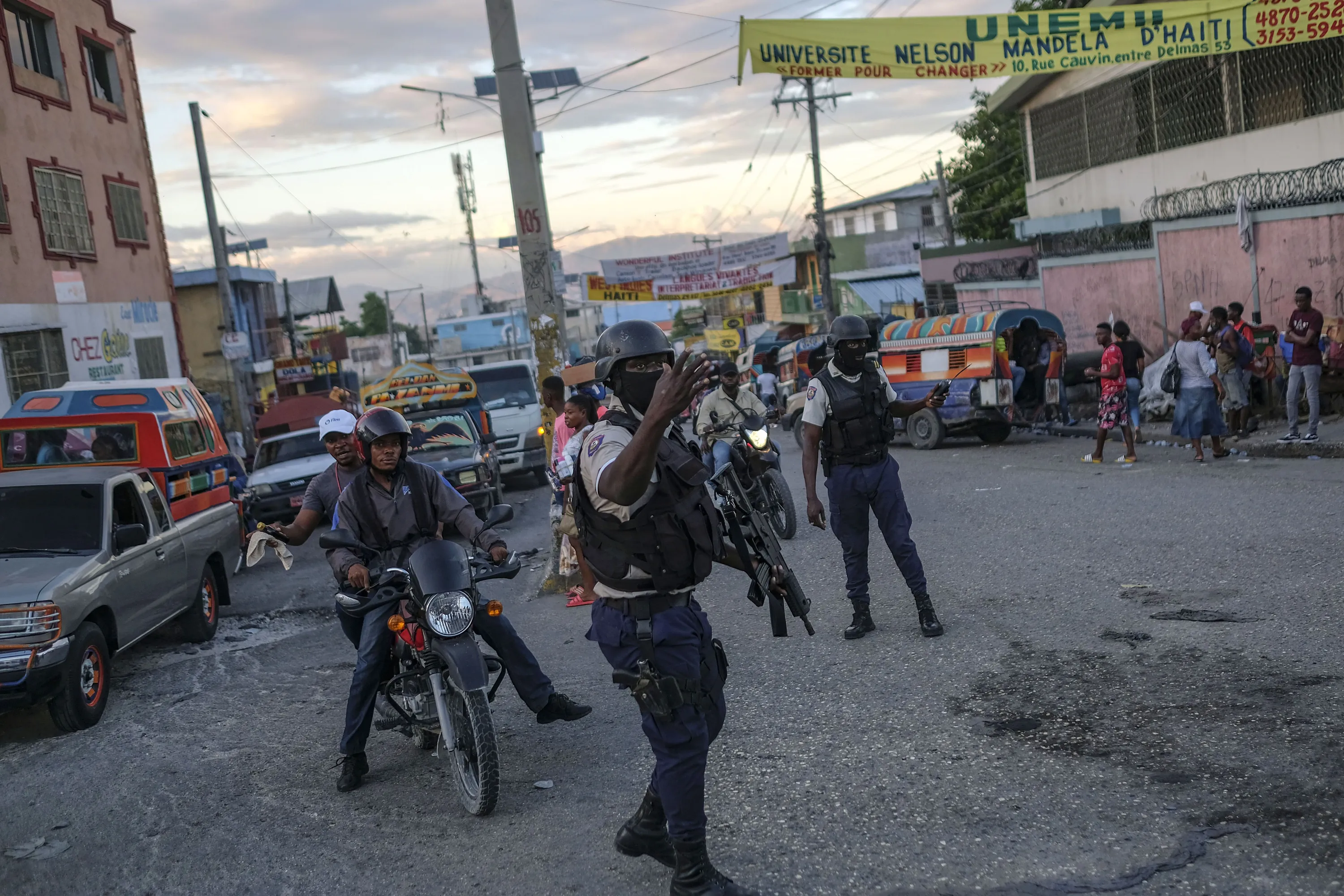 Police officers patrol at an intersection in Port-au-Prince, Haiti, Thursday, November 11, 2021. (Photo by Matias Delacroix/AP Photo)
