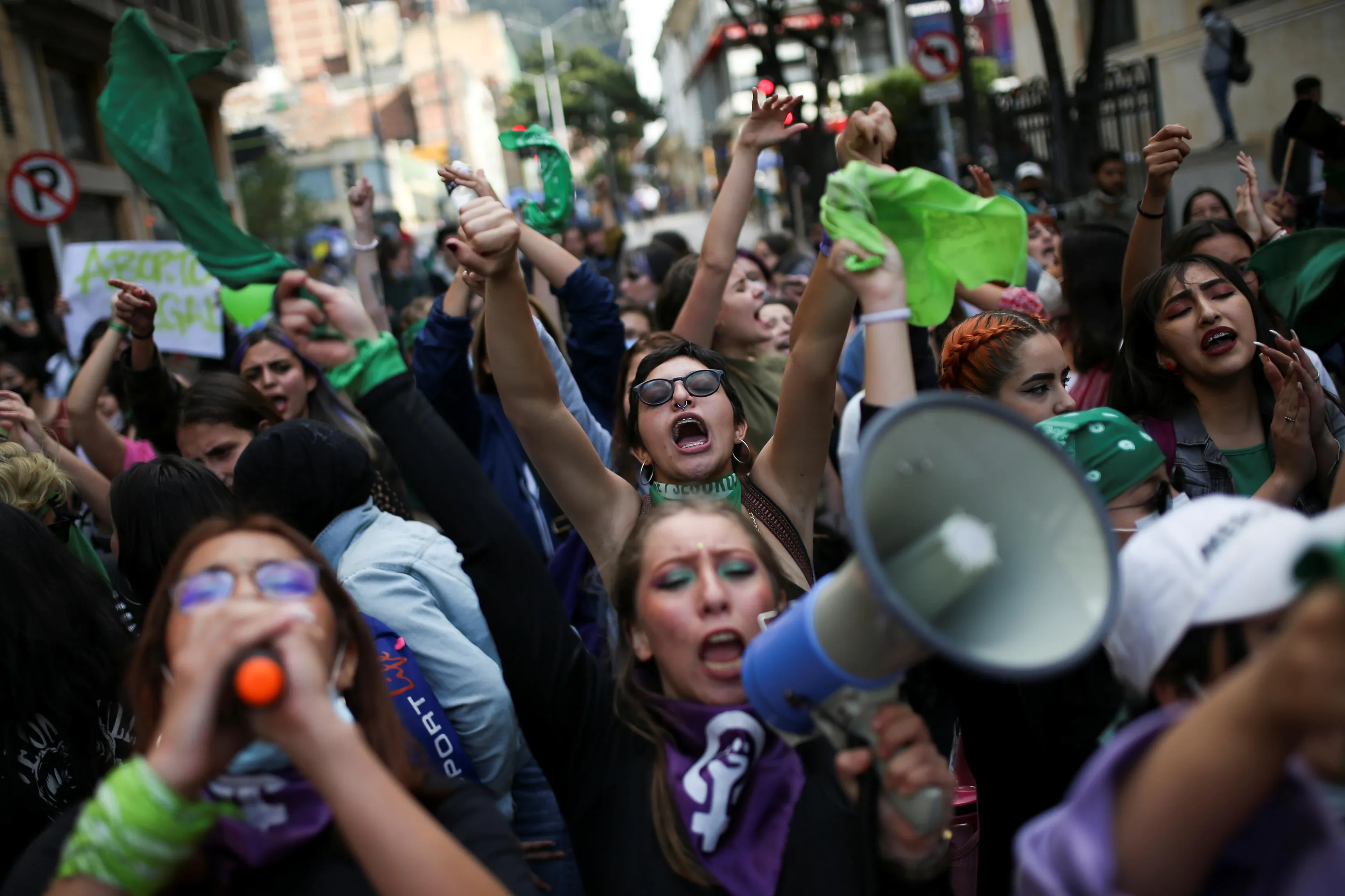 Women demonstrate in front of Colombia's constitutional court in support of removing abortion from the penal code, in Bogota, Colombia on November 18, 2021. (Photo by Luisa Gonzalez/Reuters)