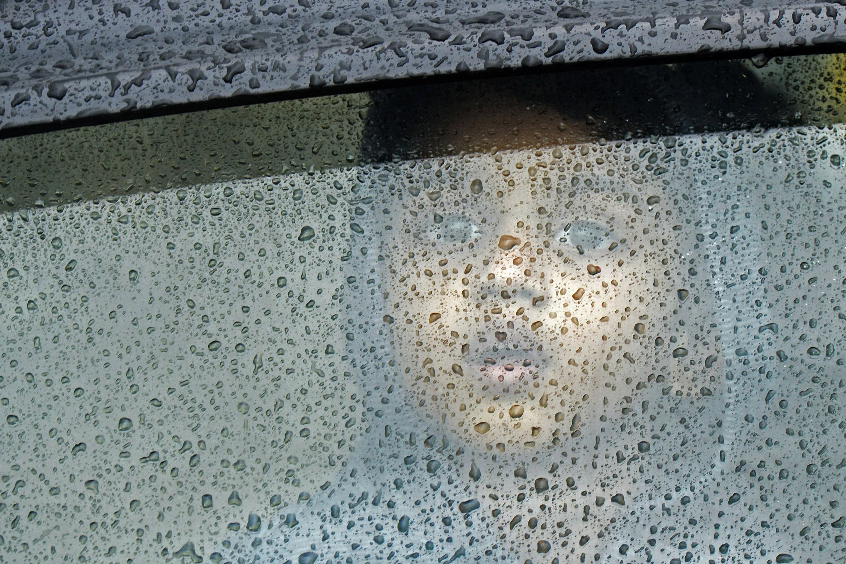 A child looks through the windshield of a car during a heavy rain shower in Chennai on November 18, 2021. (Photo by Arun Sankar/AFP Photo)
