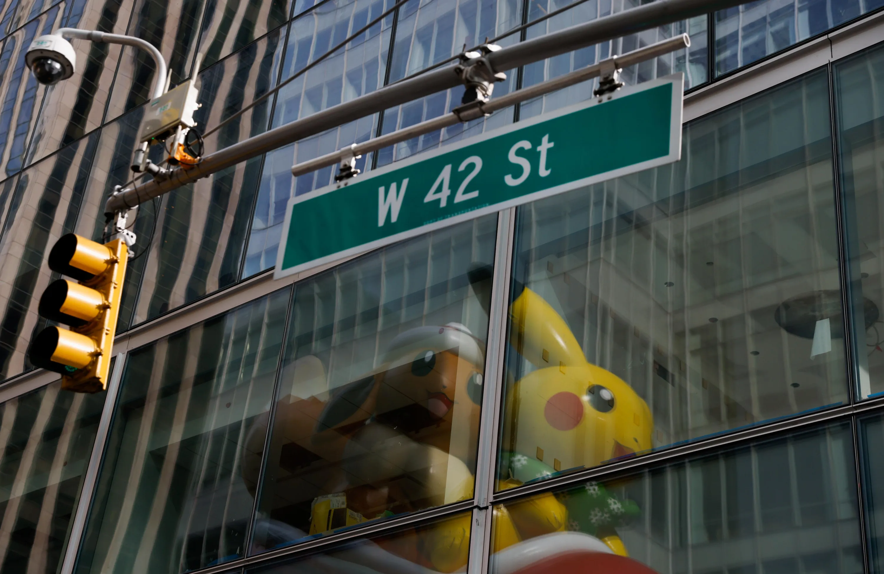 Pikachu & Eevee balloon is reflected in a window during the 95th Macy's Thanksgiving Day Parade in Manhattan, New York City, U.S., November 25, 2021. (Photo by Shannon Stapleton/Reuters)