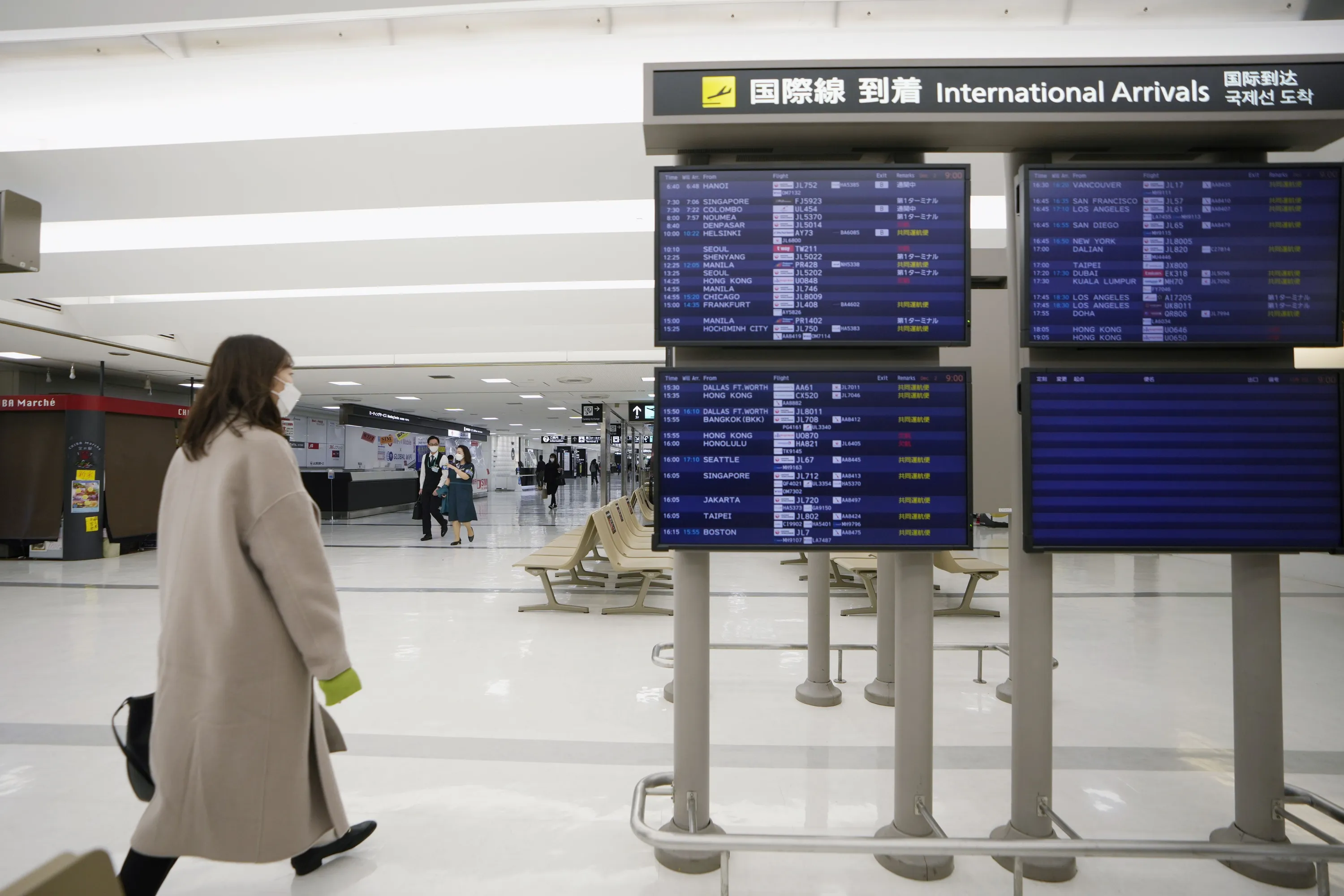 A passenger walks by arrival information screens for international flights at the Narita International Airport in Narita, east of Tokyo, Thursday, December 2, 2021. Going further than many other countries in trying to contain the virus, Japan has banned foreign visitors and asked international airlines to stop taking new reservations for all flights arriving in the country until the end of December. (Photo by Hiro Komae/AP Photo)