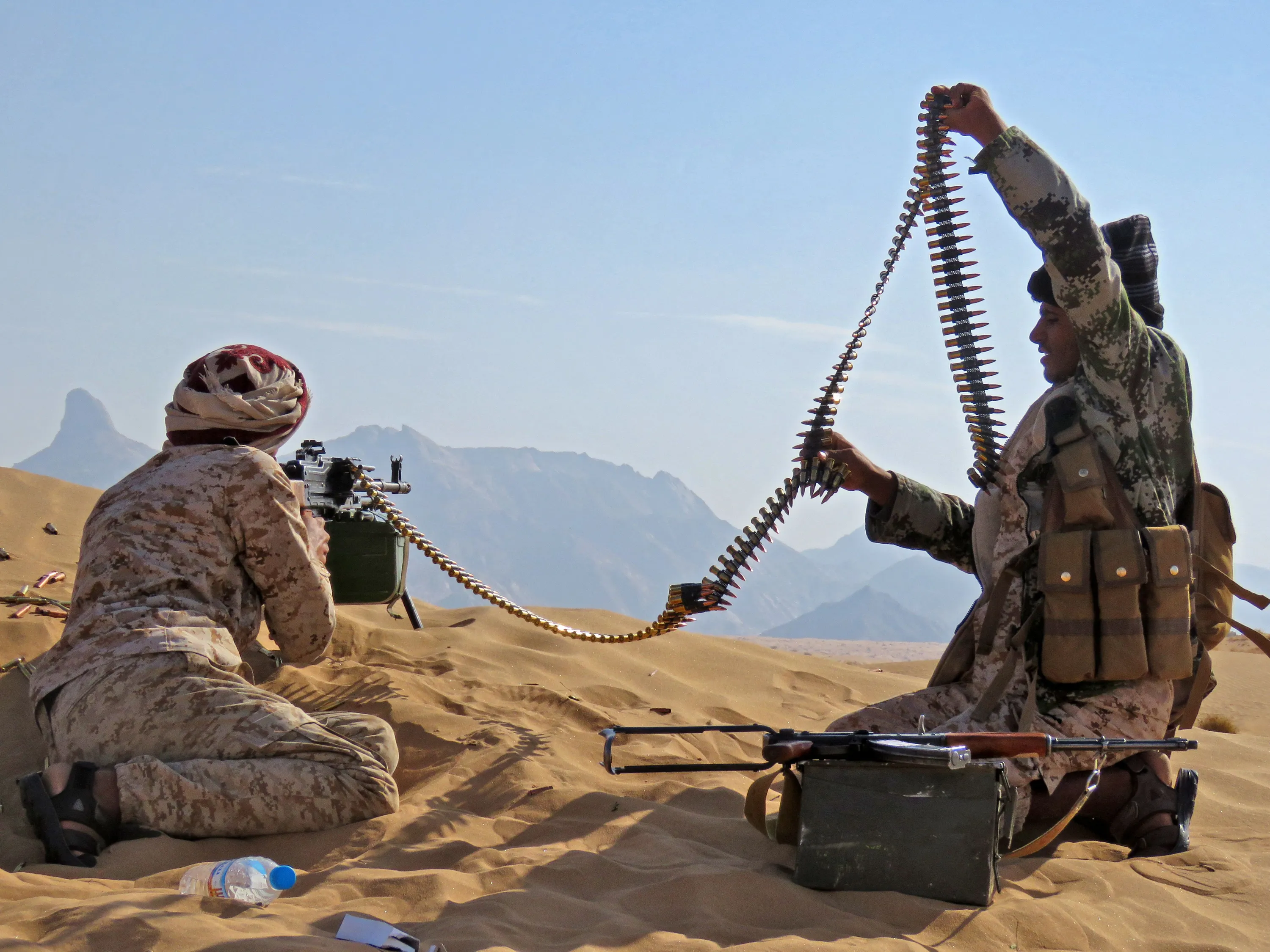 Yemeni pro-government forces are pictured during fighting with Huthi rebels on the south frontline of Marib, the last remaining government stronghold in northern Yemen, on November 10, 2021. A Yemeni military official said that 28 fighters from the pro-government Obaida tribe and seven government forces were killed in clashes with rebels south of Marib over the previous 24 hours. (Photo by AFP Photo/Stringer)
