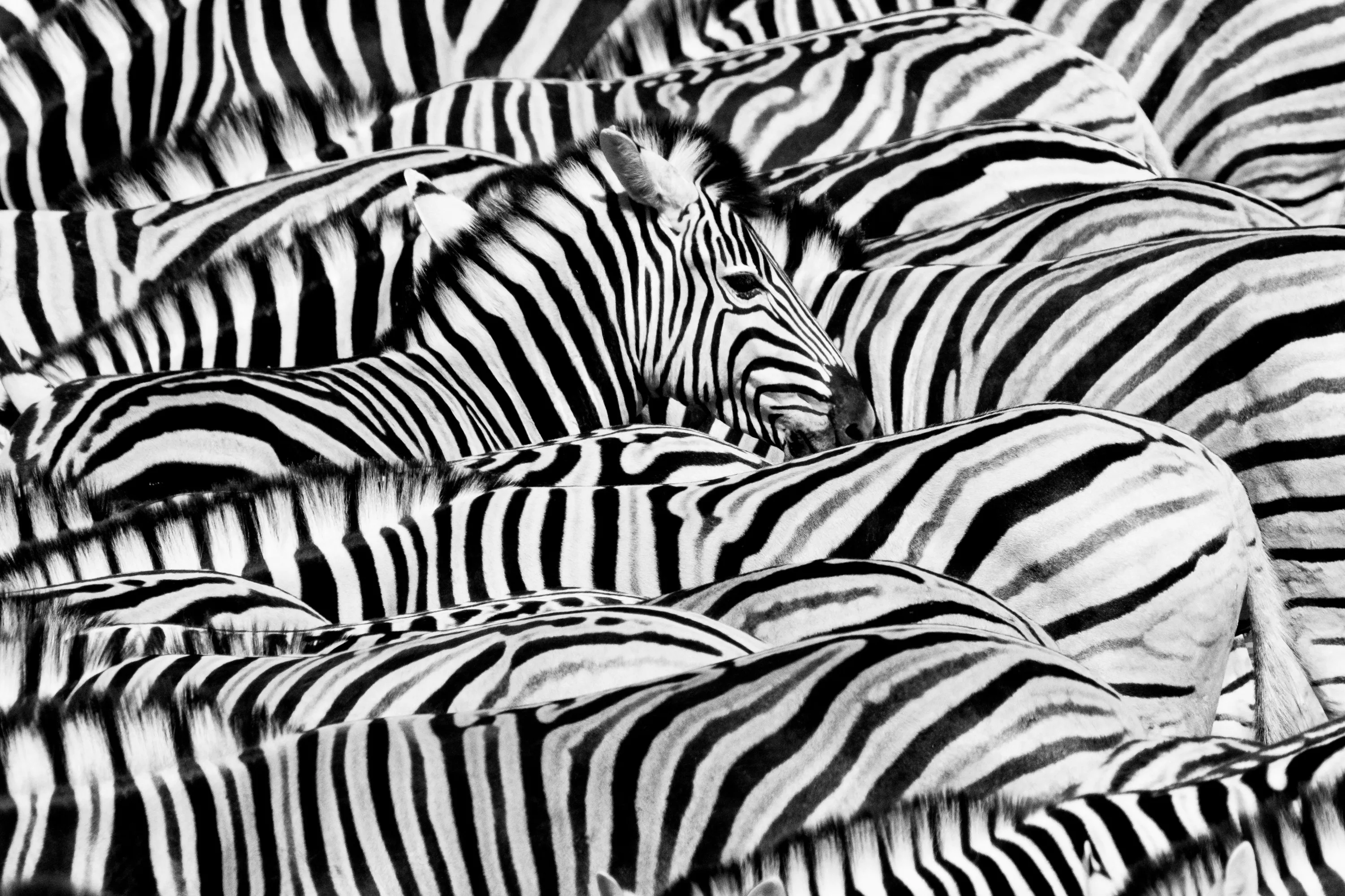 Life in black and white by Lucas Bustamante, Ecuador. Dozens of plains zebra had showed up to drink at Okaukuejo waterhole in Etosha national park, Namibia – a popular location for the animals of the area to quench their thirst. (Photo by Lucas Bustamante/Wildlife Photographer of the Year 2021)