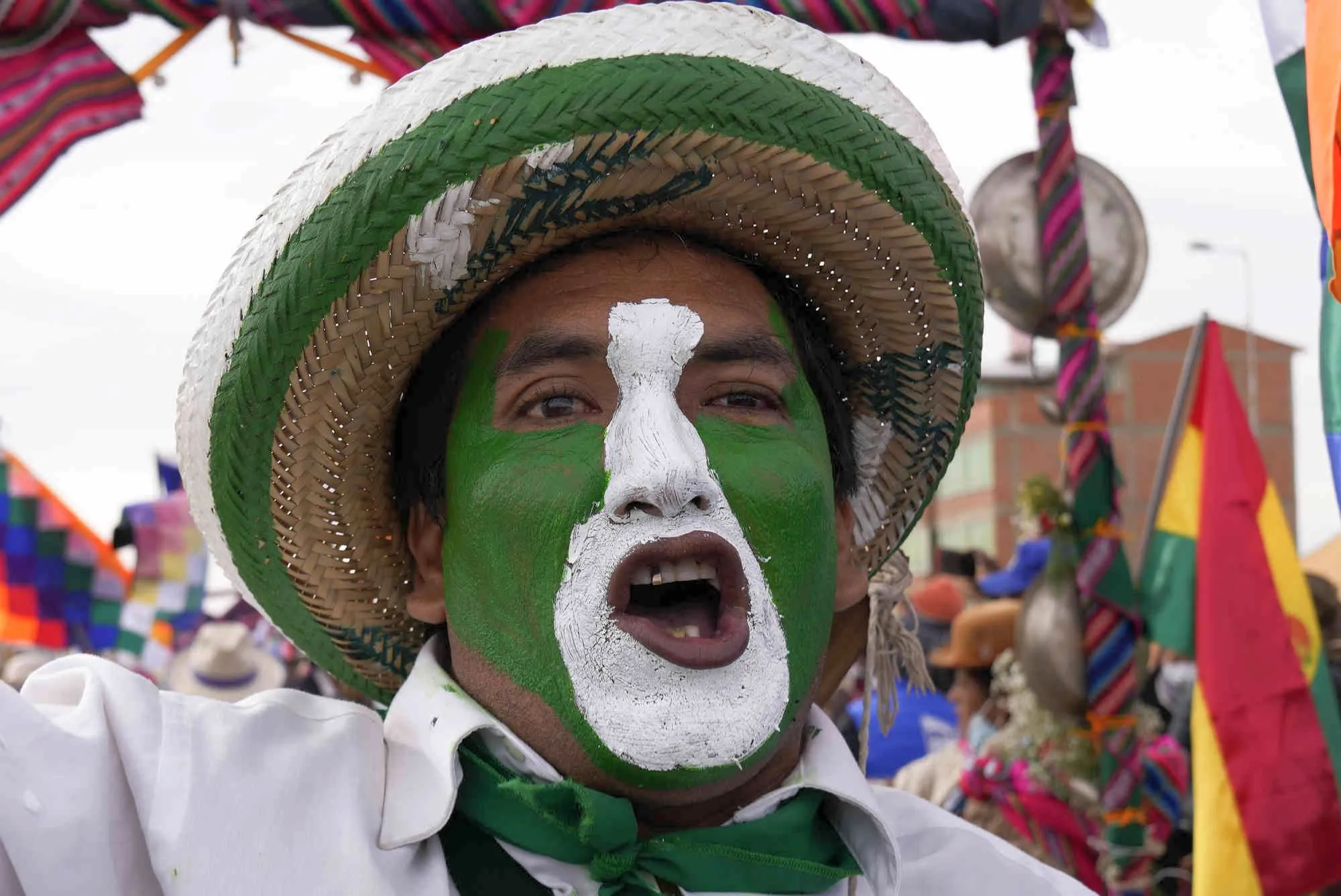 A government supporter shouts during a march to the capital coined “March for the homeland” in Caracollo, Bolivia, Tuesday, November 23, 2021. (Photo by Juan Karita/AP Photo)