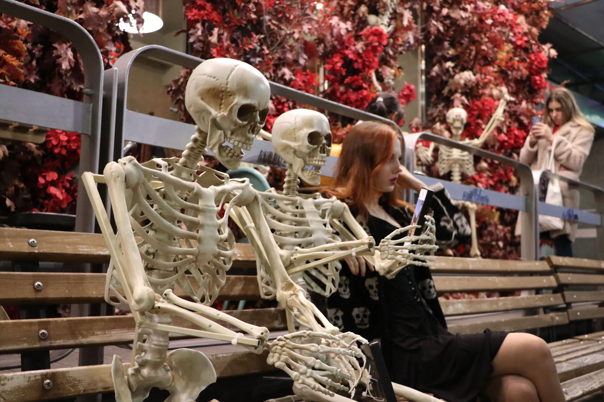 Halloween themed decorations are placed at a store ahead of Halloween in Kiev, Ukraine on October 21, 2021. (Photo by Talha Yavuz/Anadolu Agency via Getty Images)