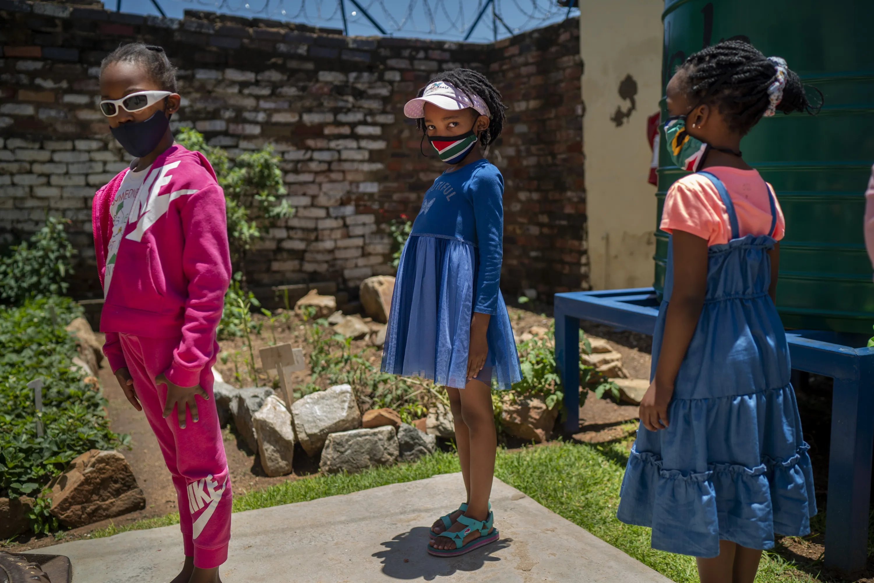 Pupils wearing masks line up to enter their classroom at the Kgololo Academy on “Spirit Day” in Johannesburg's Alexandra township Tuesday November 30, 2021. Despite global worry, doctors in South Africa are reporting patients with the COVID-19 omicron variant are suffering mostly mild symptoms so far. But they warn that it is early and most of the new cases are in people in their 20s and 30s, who generally do not get as sick from COVID-19 as older patients. (Photo by Jerome Delay/AP Photo)