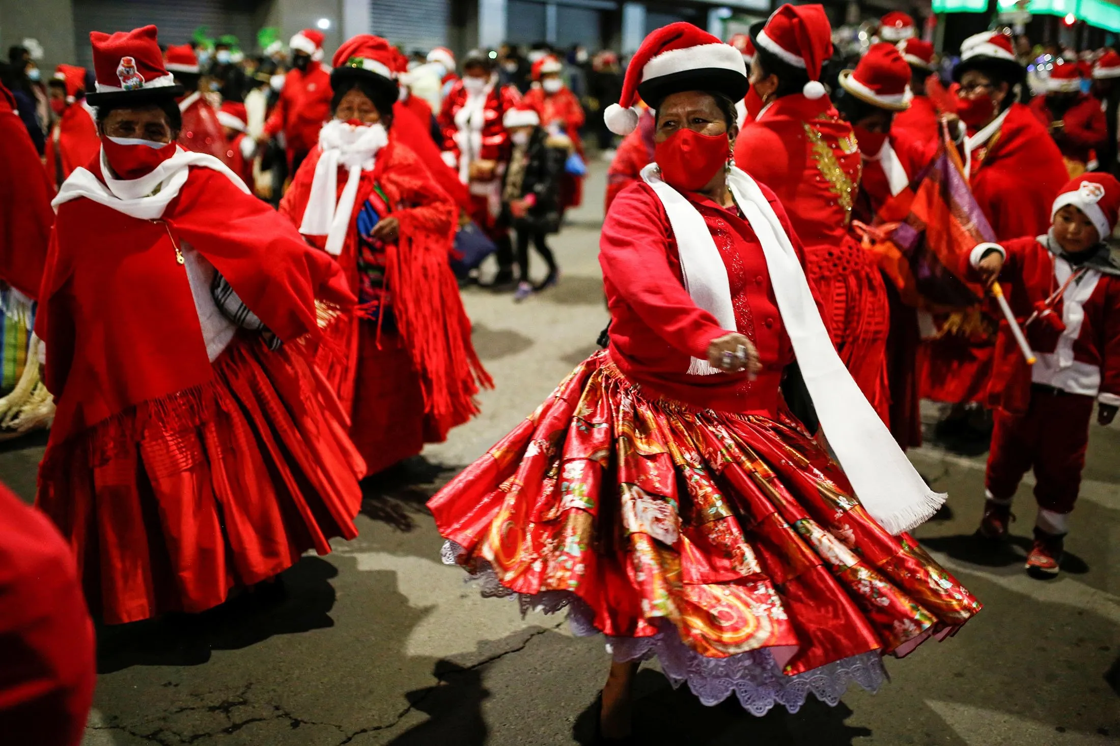 Street market vendors participate in the annual Christmas parade, in La Paz, Bolivia on November 26, 2021. (Photo by Manuel Claure/Reuters)