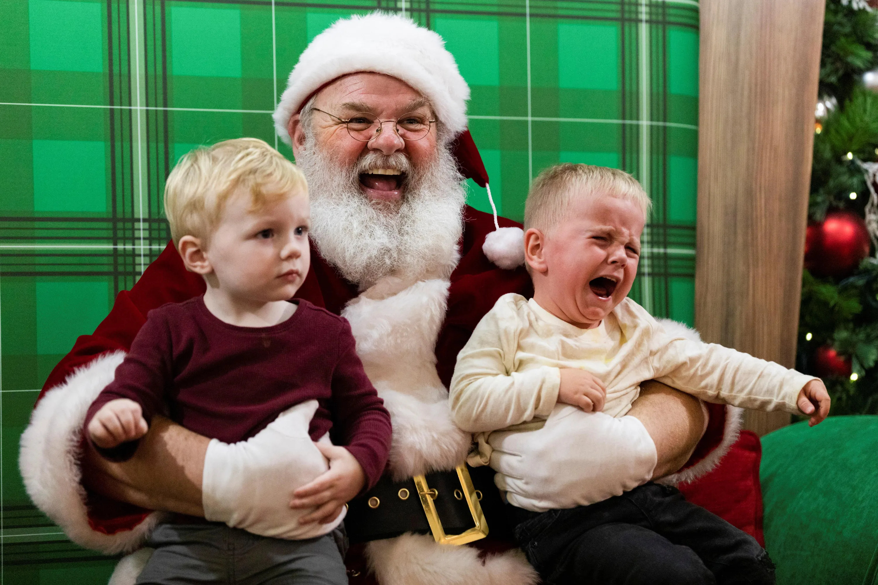 Brantley O'Hanlon, 2, and Christian Malseed, 2, pose for a photo with Santa at the Willow Grove Park Mall ahead of Christmas in Willow Grove, Pennsylvania, U.S. December 3, 2021. (Photo by Hannah Beier/Reuters)