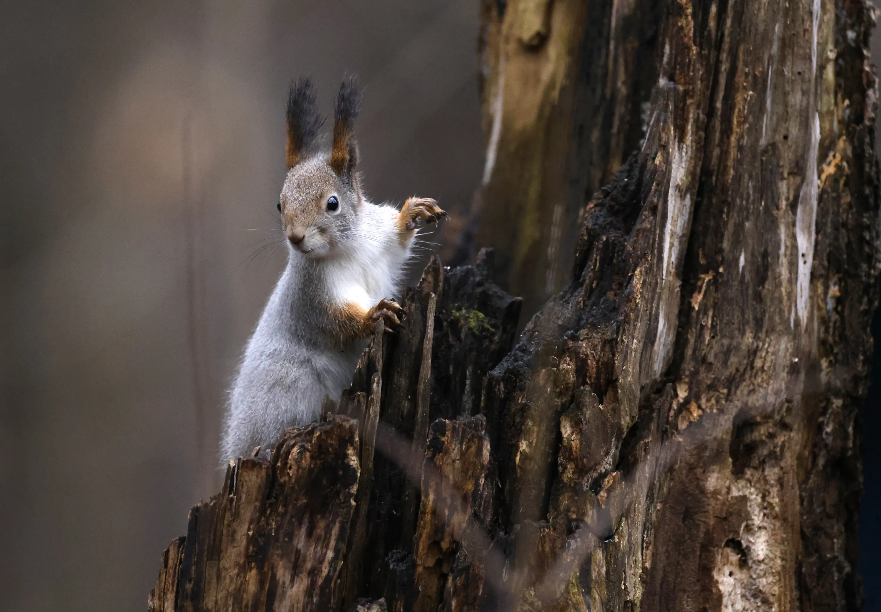 A squirrel on a stump in Izmailovo Park in Moscow, Russia in late autumn November 21, 2021. (Photo by Vasily Fedosenko/TASS)