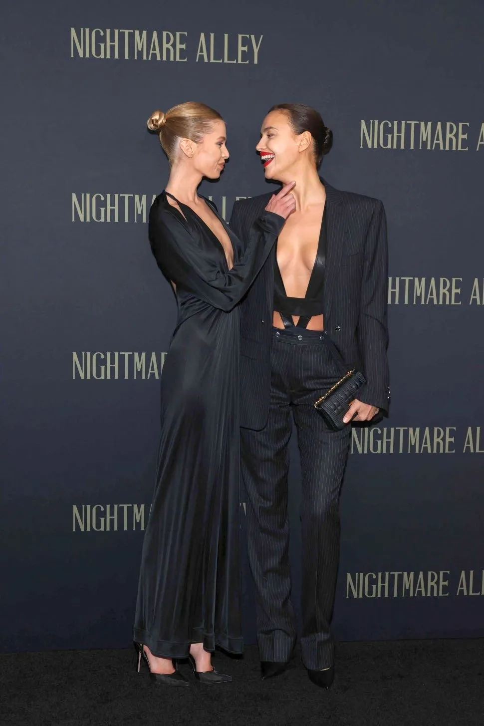 Belgian-born Northern Irish-New Zealand model Stella Maxwell, left, and Russian model Irina Shayk attend the premiere of “Nightmare Alley” at Alice Tully Hall on Wednesday, December 1, 2021, in New York. (Photo by Dia Dipasupil/WireImage)