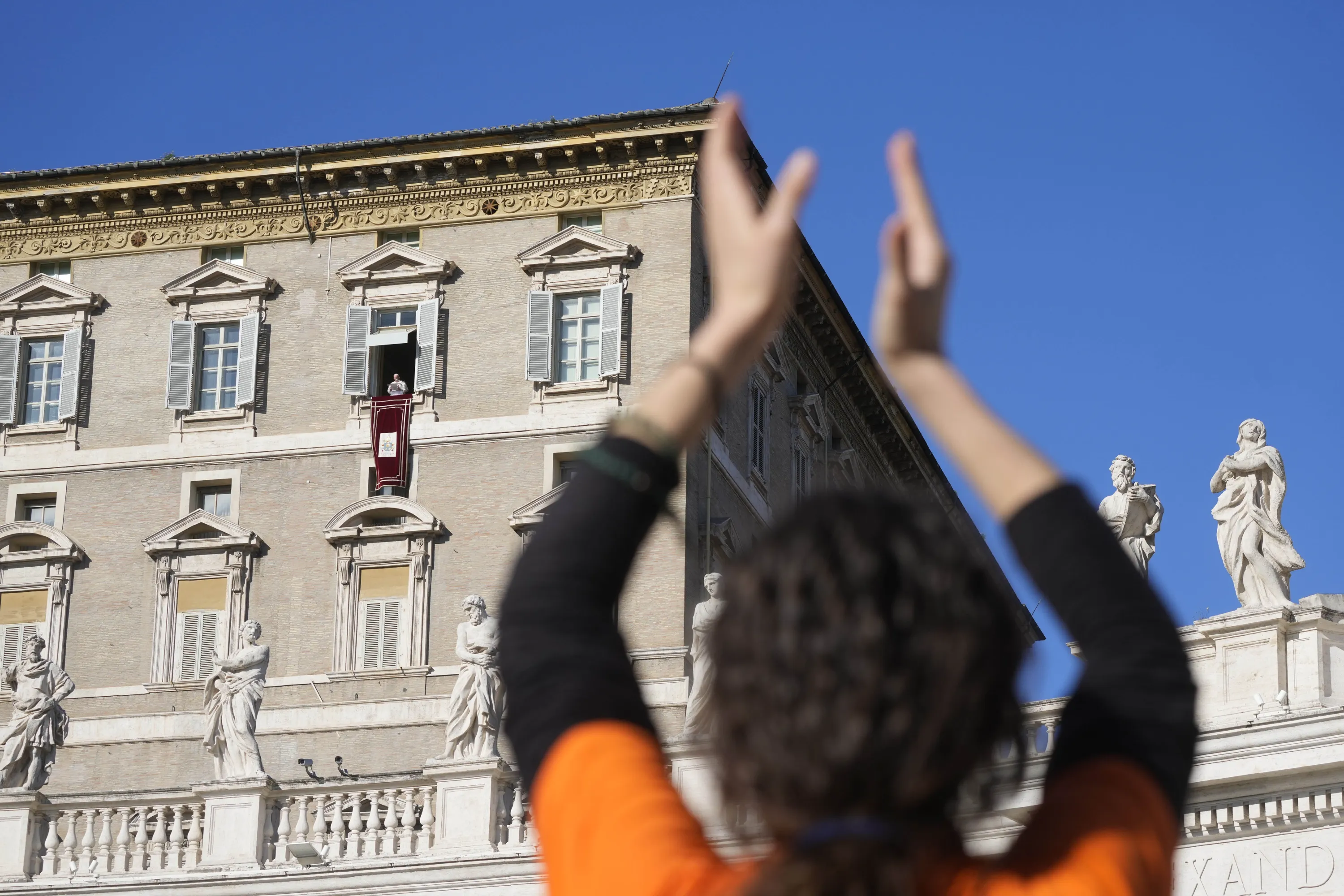 Pope Francis delivers the Angelus noon prayer in St. Peter's Square at the Vatican, Sunday, December 12, 2021. (Photo by Gregorio Borgia/AP Photo)