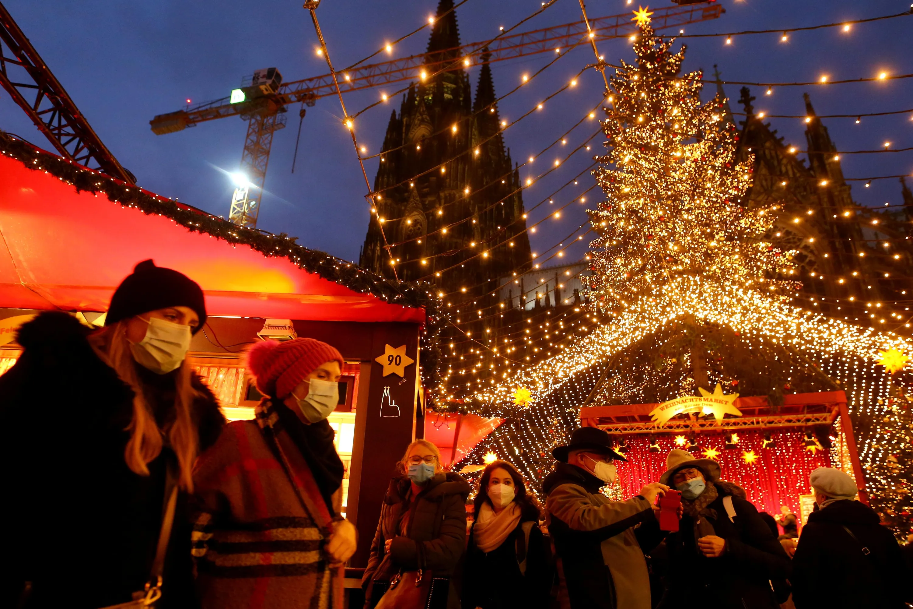 People visit a Christmas market next to Cologne Cathedral as the spread of the coronavirus disease (COVID-19) continues in Cologne, Germany, December 1, 2021. (Photo by Thilo Schmuelgen/Reuters)