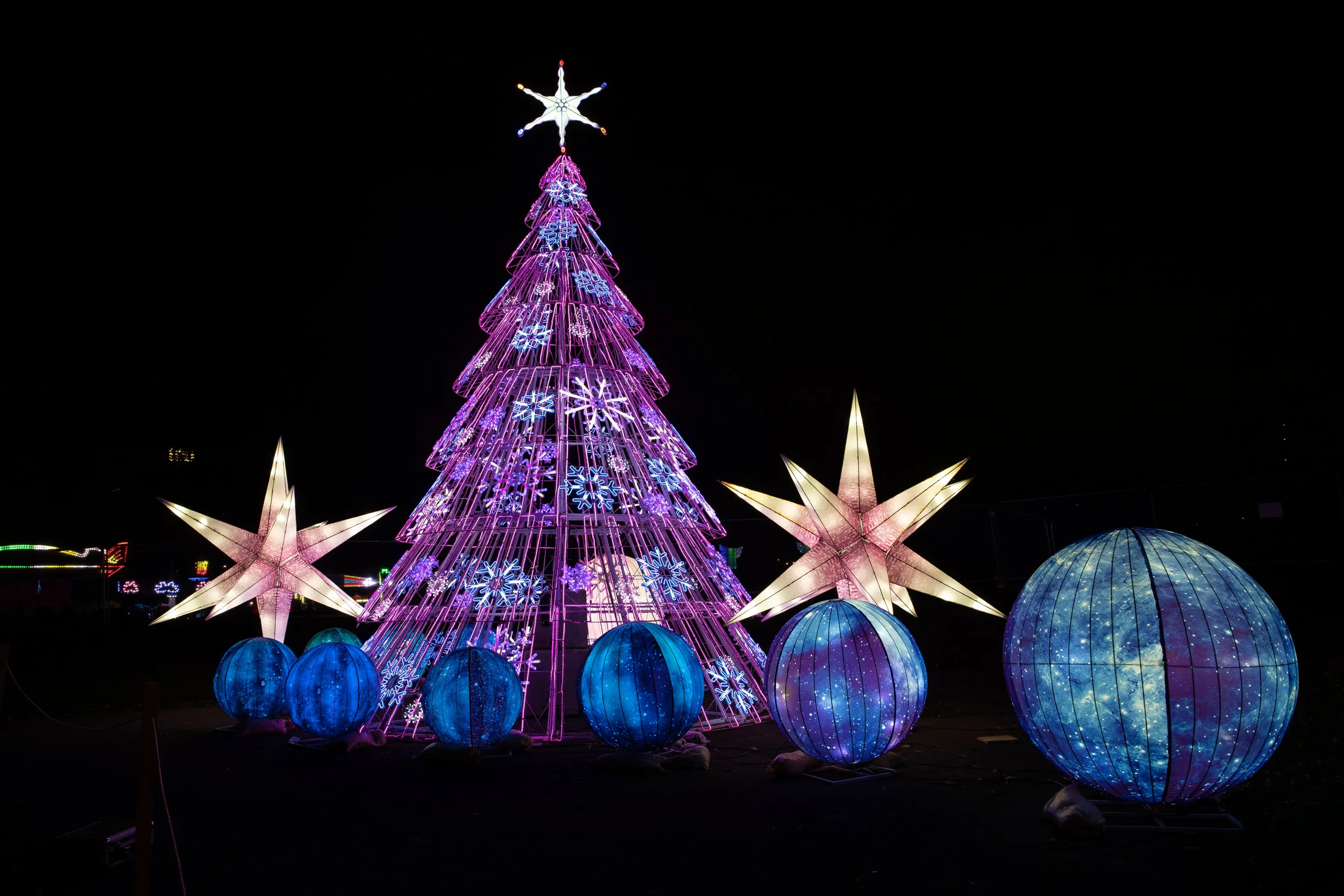A luminous Christmas tree and decorations during the launch night of Lightopia London 2021 at Crystal Palace Park on November 18, 2021 in London, England. (Photo by John Phillips/Getty Images for Lightopia London)